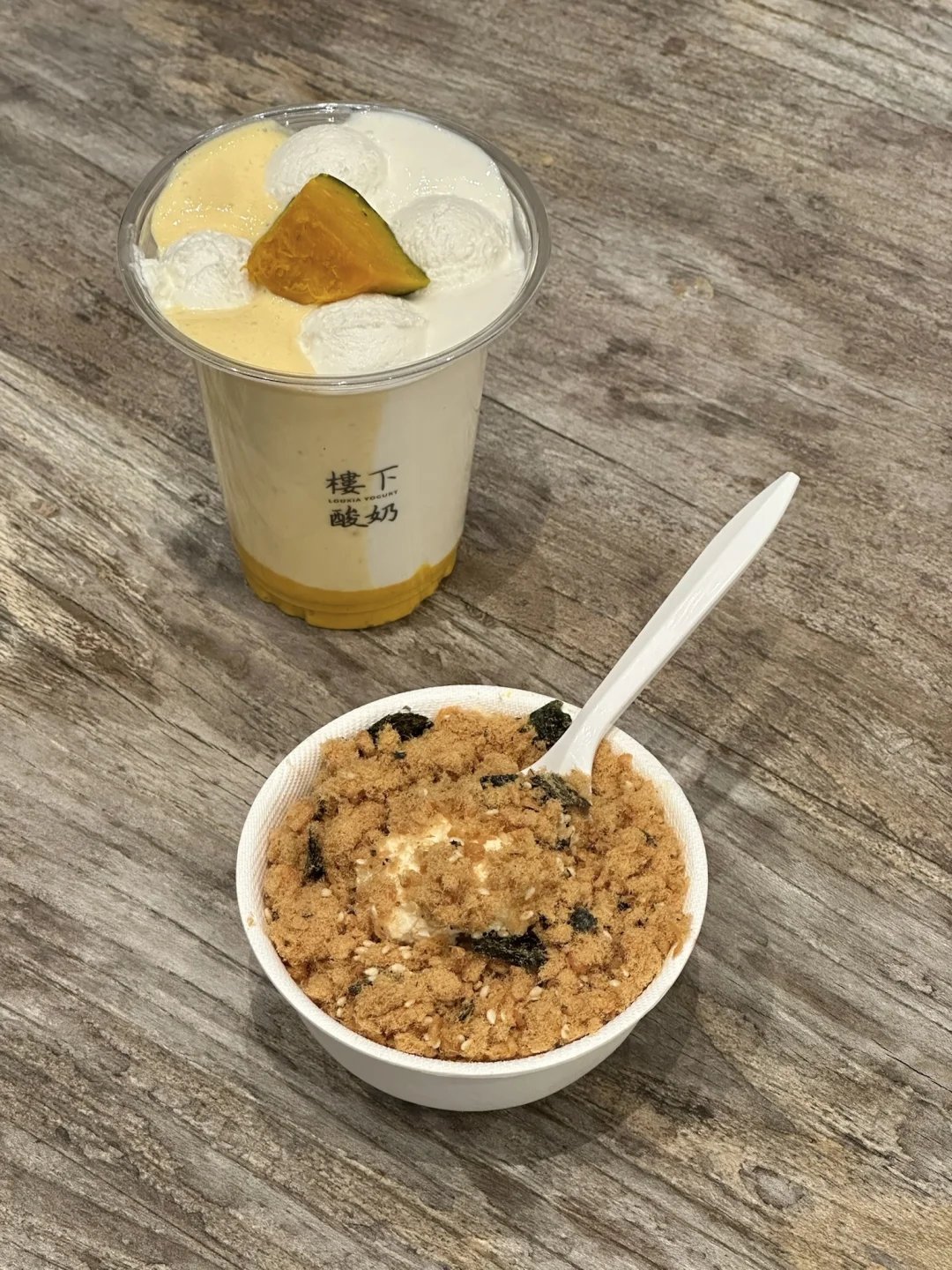 南瓜咸蛋黄肉松碗😋肉松小贝pro版!!! 好特别的组合!!一口意外的好吃,黏糊糊的咸甜鲜香!!越吃越上头🤤 还有南瓜苹果鸳鸯酪!!奶fufu的口感好丝滑了~