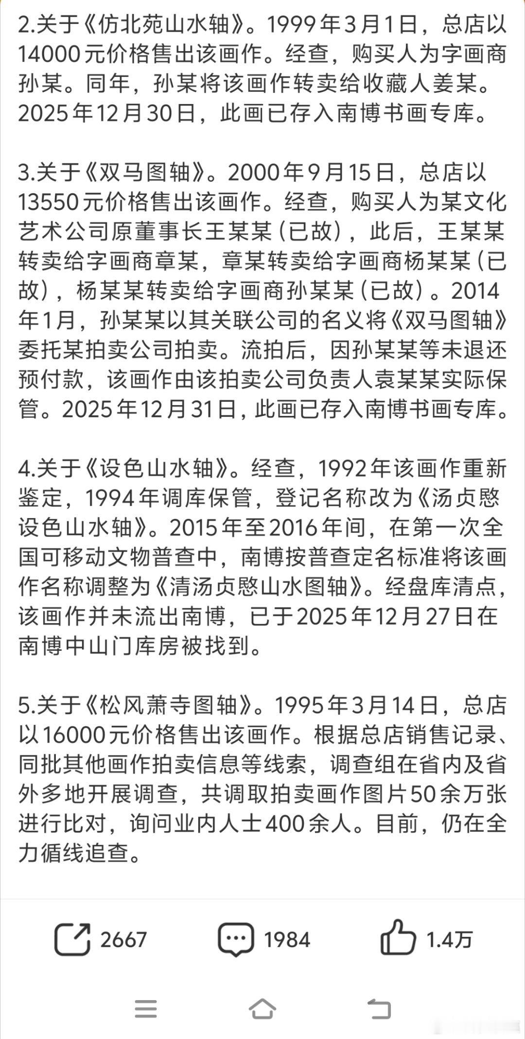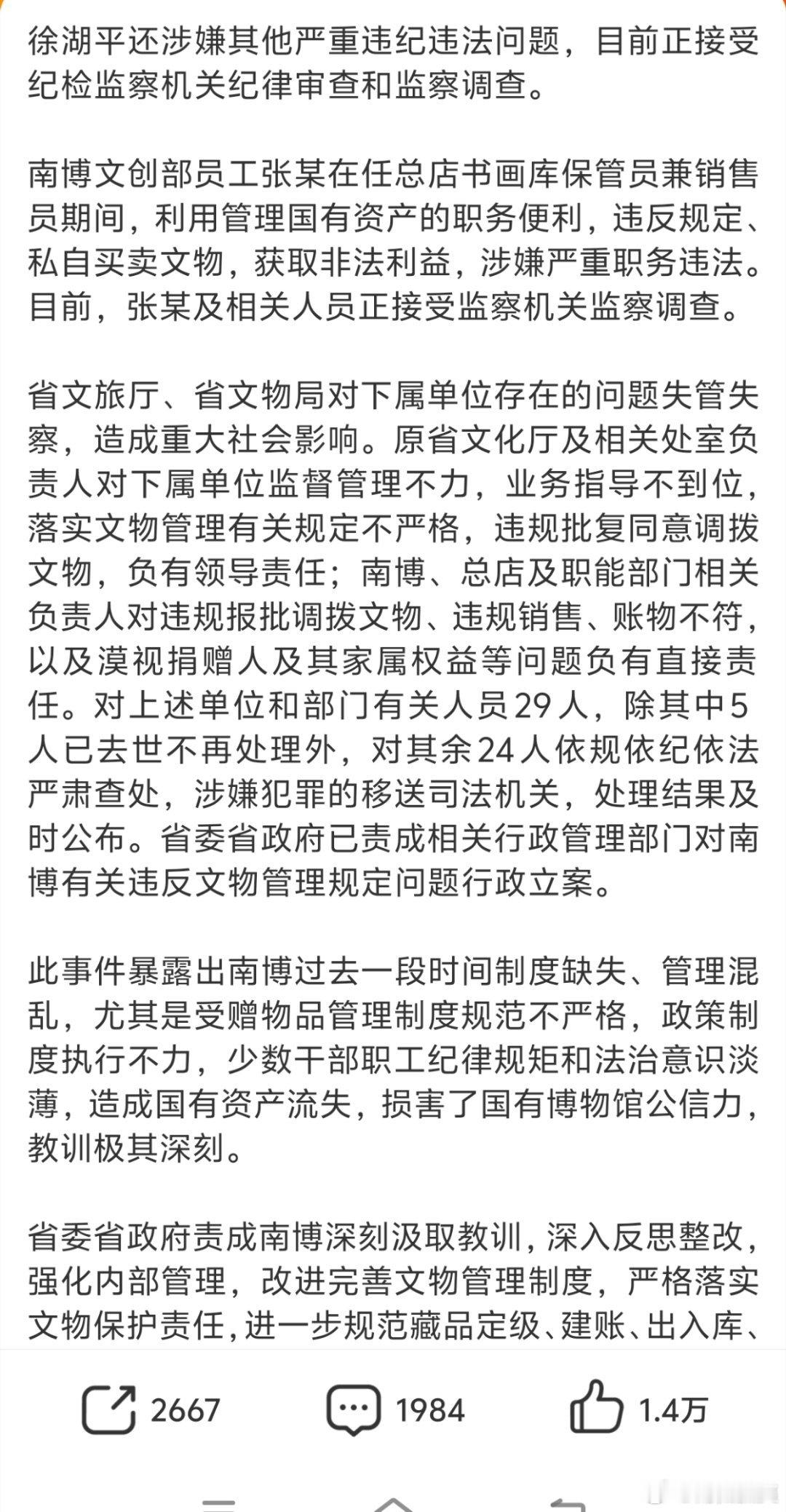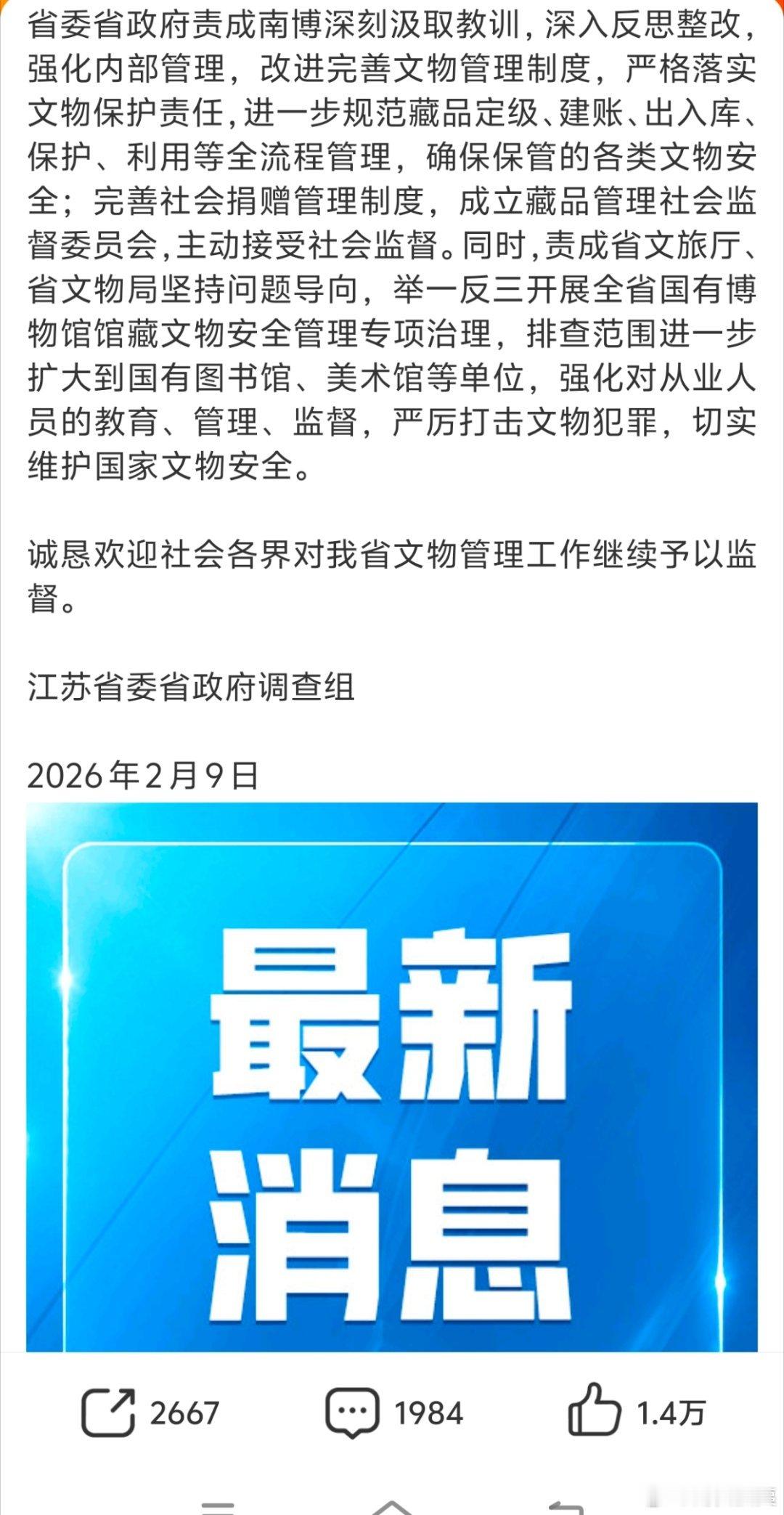 这个南京博物馆事件确实太恶劣了,我觉得不仅仅针对江苏进行全省排查,全国也应该往前倒查,说不定能挽回更多文物流失南京博物院事件最新通报热点现场