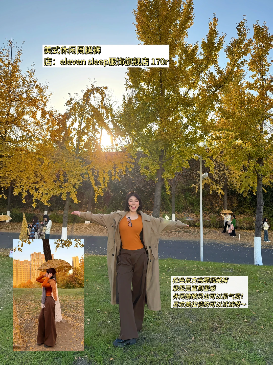 💰 170r:棕色复古高腰阔腿裤