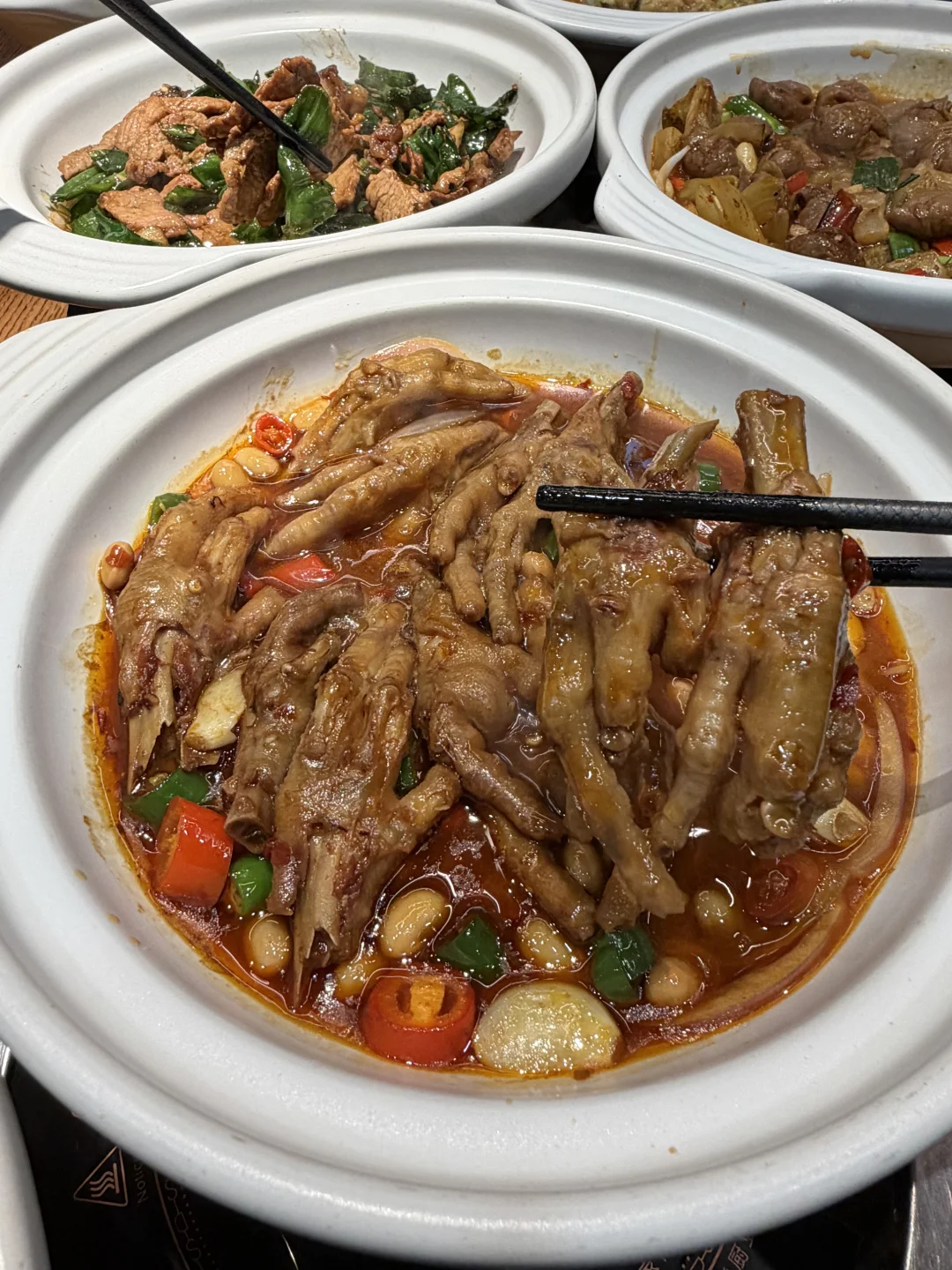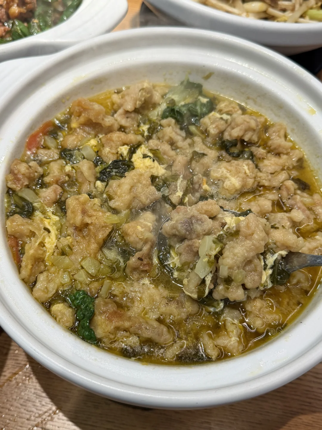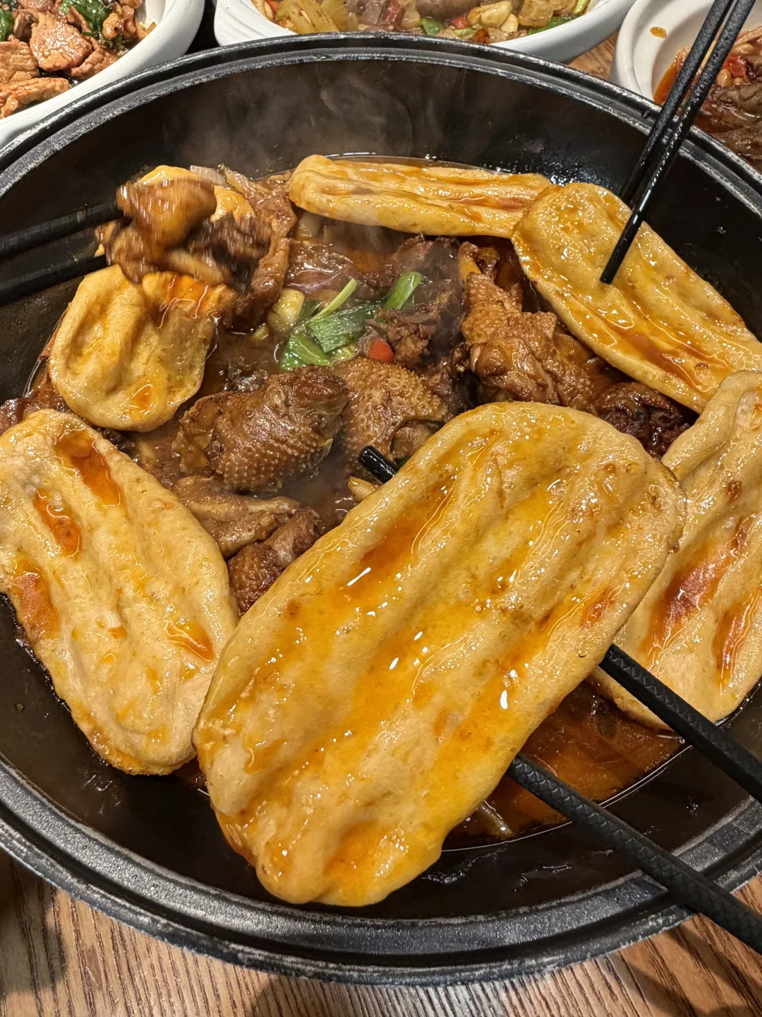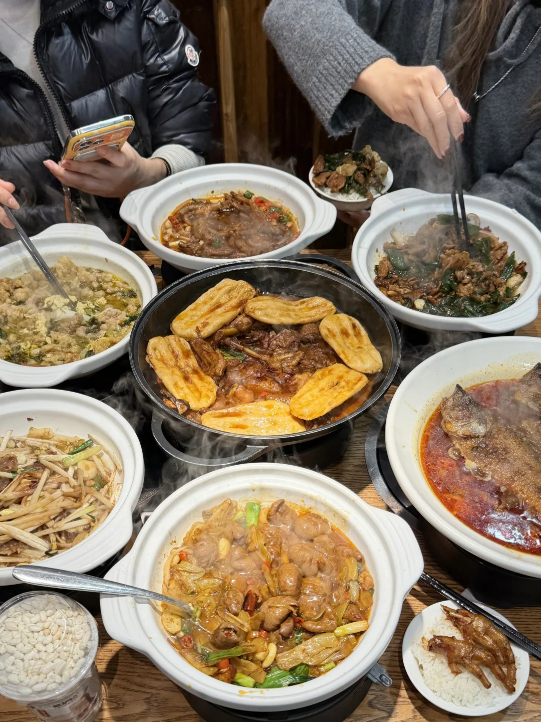 不用去广德!!在杭州也能吃到了!!! 每天座无虚席,真的好火!!😭😭都是新鲜现炒的,很有锅气… 铁锅炖小公鸡真的香迷糊了,满都是大块土鸡肉炖煮的软烂入味,锅圈一边贴饼子,浸满汤汁🤤 臭鳜鱼记得要尝尝!鱼肉鲜嫩,咸香下饭!! 还有酸菜小酥肉炖锅、黄豆鸡爪炖锅…都好好吃