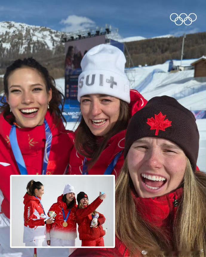 谷爱凌决赛谷爱凌冬奥银牌 2026年米兰冬奥会自由式滑雪女子坡面障碍技巧颁奖仪式后冠亚季军的合影🤳