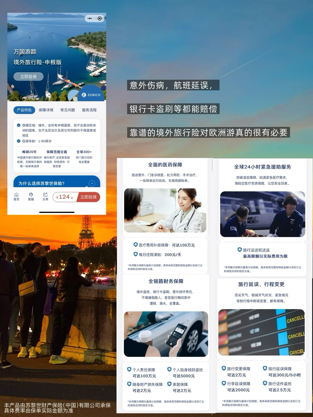 先把境外旅行险买好。这个我已经形成习惯了,每次出国都会买,就是图一个安心。像这次用的「苏黎世 Zurich 万国游踪境外旅行险」,前身是美亚万国游踪,价格不变,服务全面升级了~