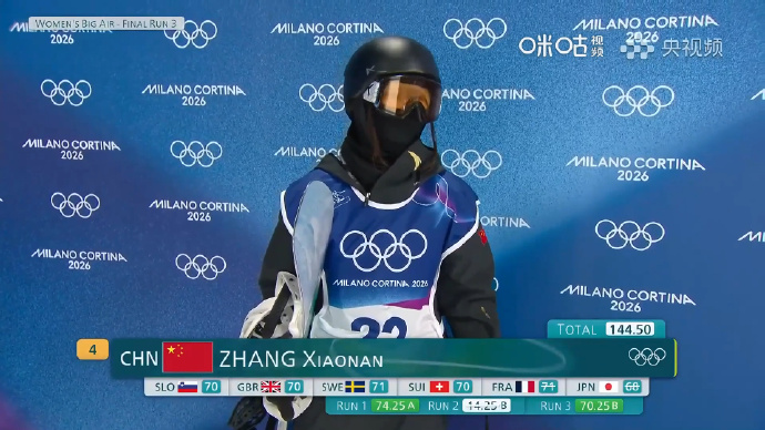 虎扑02月10日讯在米兰科尔蒂纳冬奥会单板滑雪女子大跳台决赛中,中国选手张小楠顶住高难度对决压力,最终以144.50分获得第5名。