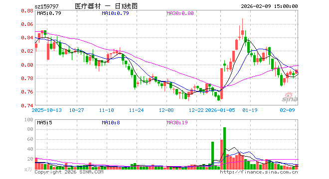 2月9日,医疗器械ETF汇添富(159797)涨1.02%,成交额731.18万元。当日份额减少400.00万份,最新份额为4.25亿份,近20个交易日份额减少600.00万份。最新资产净值计算值为3.36亿元。