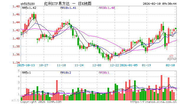 2月10日,红利ETF易方达(515180)开盘涨0.21%,报1.425元。红利ETF易方达(515180)重仓股方面,中远海控开盘跌0.07%,广汇能源涨0.00%,中谷物流跌0.19%,山煤国际跌0.45%,平煤股份涨0.12%,潞安环能涨0.00%,鄂尔多斯涨0.26%,山西焦煤跌0.43%,陕西煤业涨0.00%,藏格矿业涨0.37%。