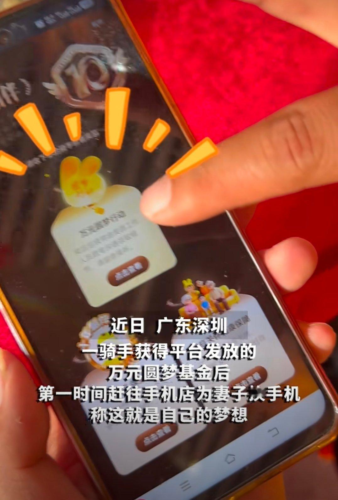 骑手给妻子换手机被反复要求退货我一直坚信努力付出的人就会有回报!因为你的努力所有人都看得到,就像平台给骑手设立的圆梦基金,不就是在奖励他们付出的同时,鼓励他们去实现自己的一些小“梦想”么!我们最在意的往往不会是自己,而是自己的家人,他们就是我们努力奋斗的底气和动力!当你在做一些善举的时候,有平台给你兜底,有奖励来犒劳你的付出,有家人来分享你的喜悦,幸福不就是这样简单,深圳骑手都这么办事吗