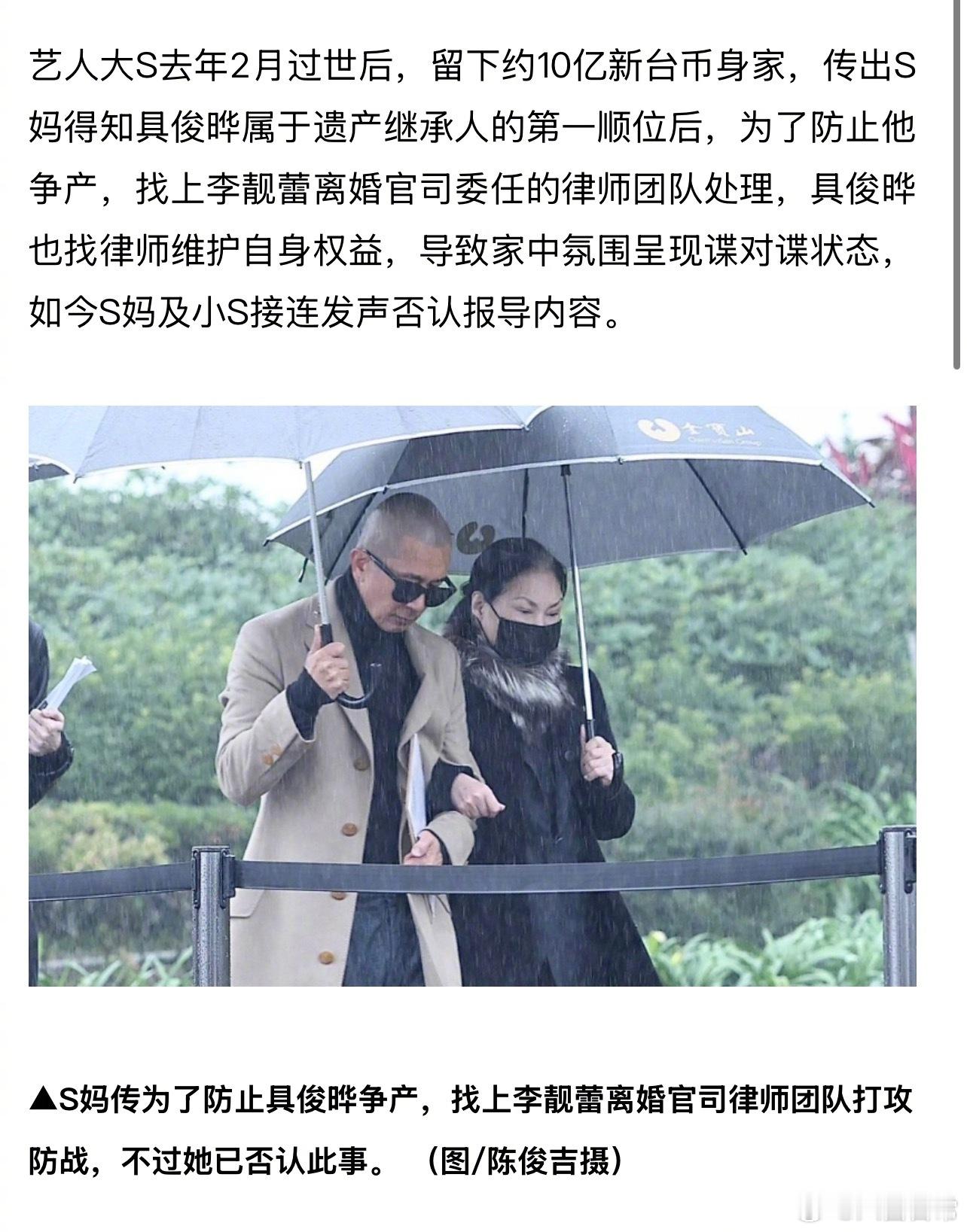 S妈否认为大S遗产打官司小S怒斥造谣者