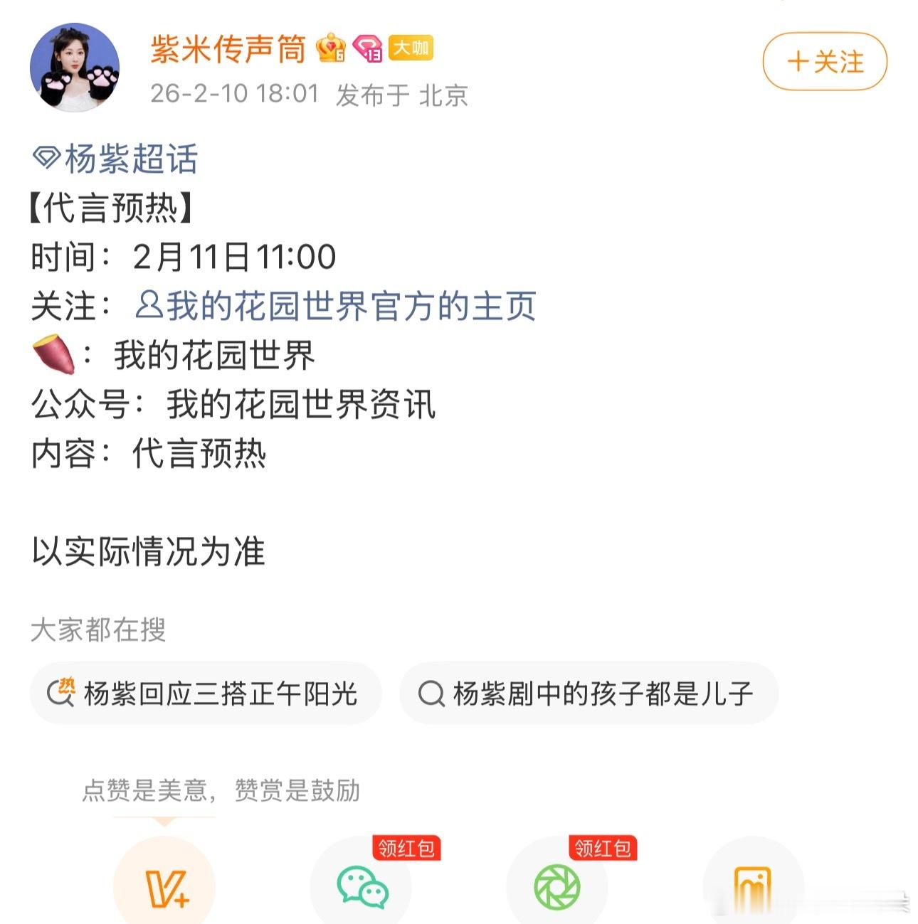 去年八月份玩的游戏《我的花园世界》,今年2月份杨紫就要代言了呢。国色芳华长尾🈶