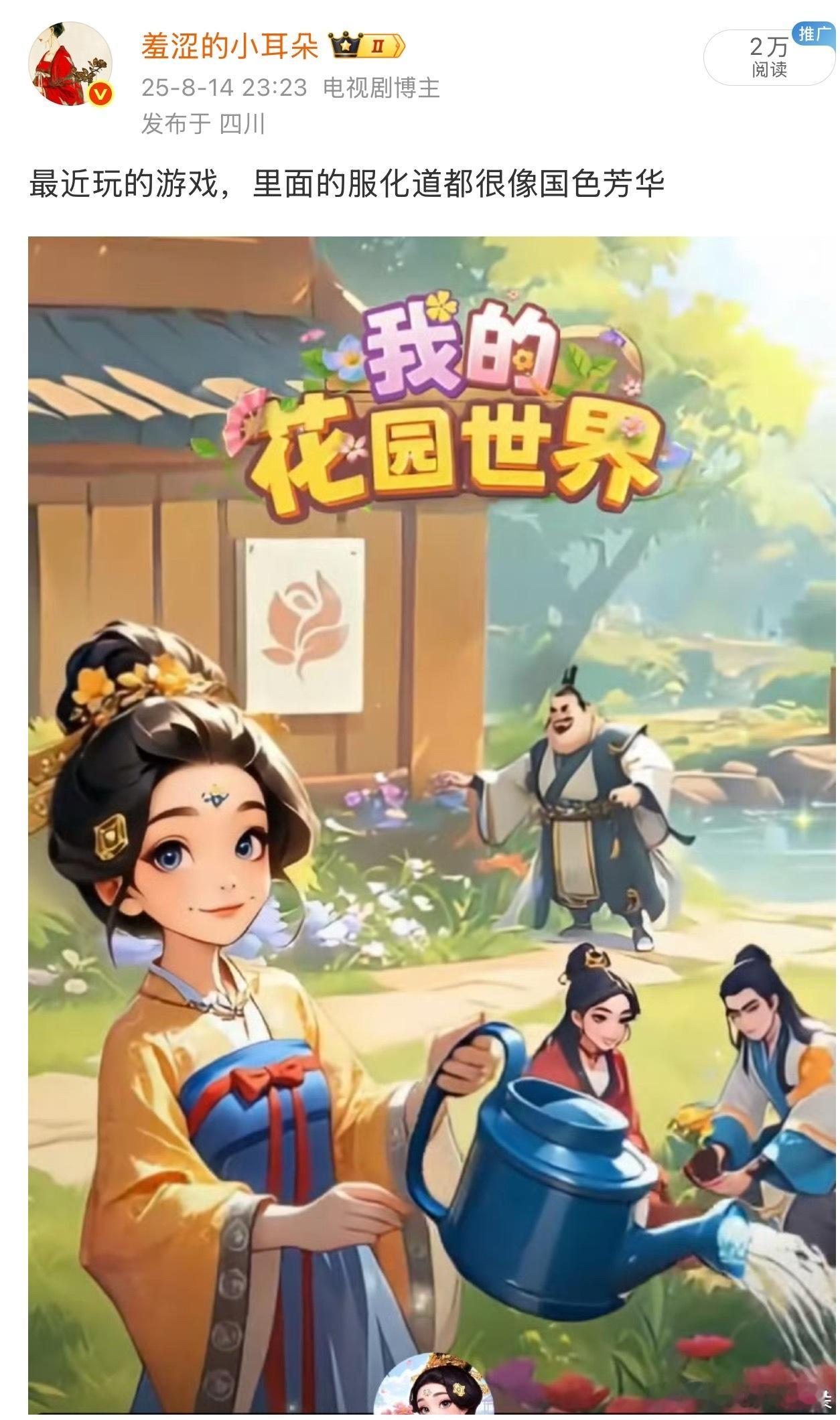 去年八月份玩的游戏《我的花园世界》,今年2月份杨紫就要代言了呢。国色芳华长尾🈶!!
