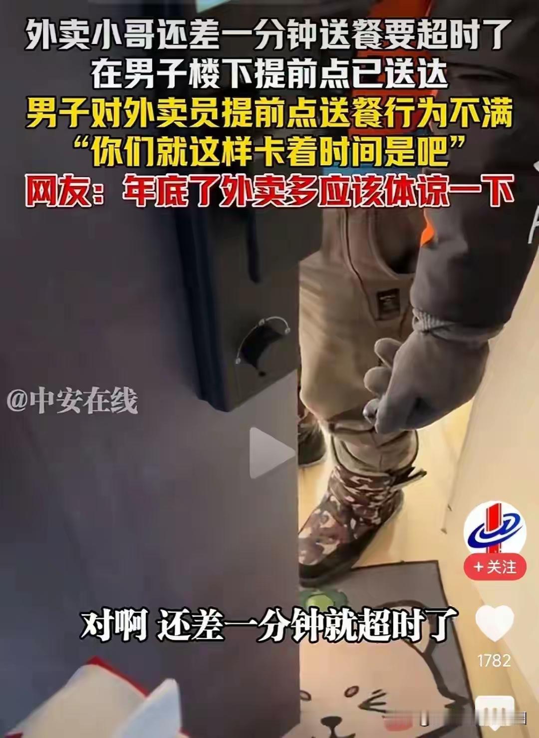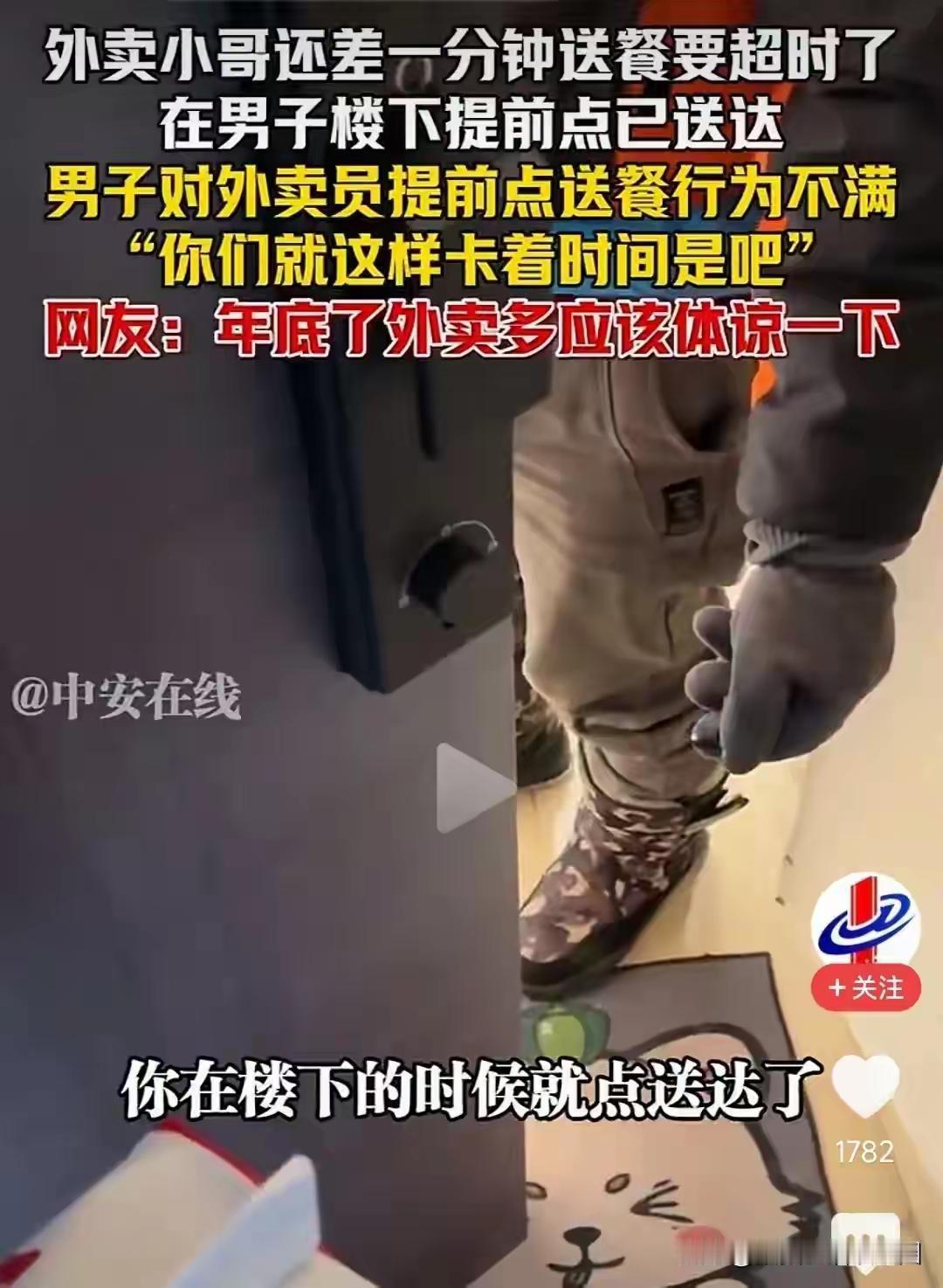 男子不满外卖小哥提前点送达后续!男子全网已社死 网友:斤斤计较 事情的起因似