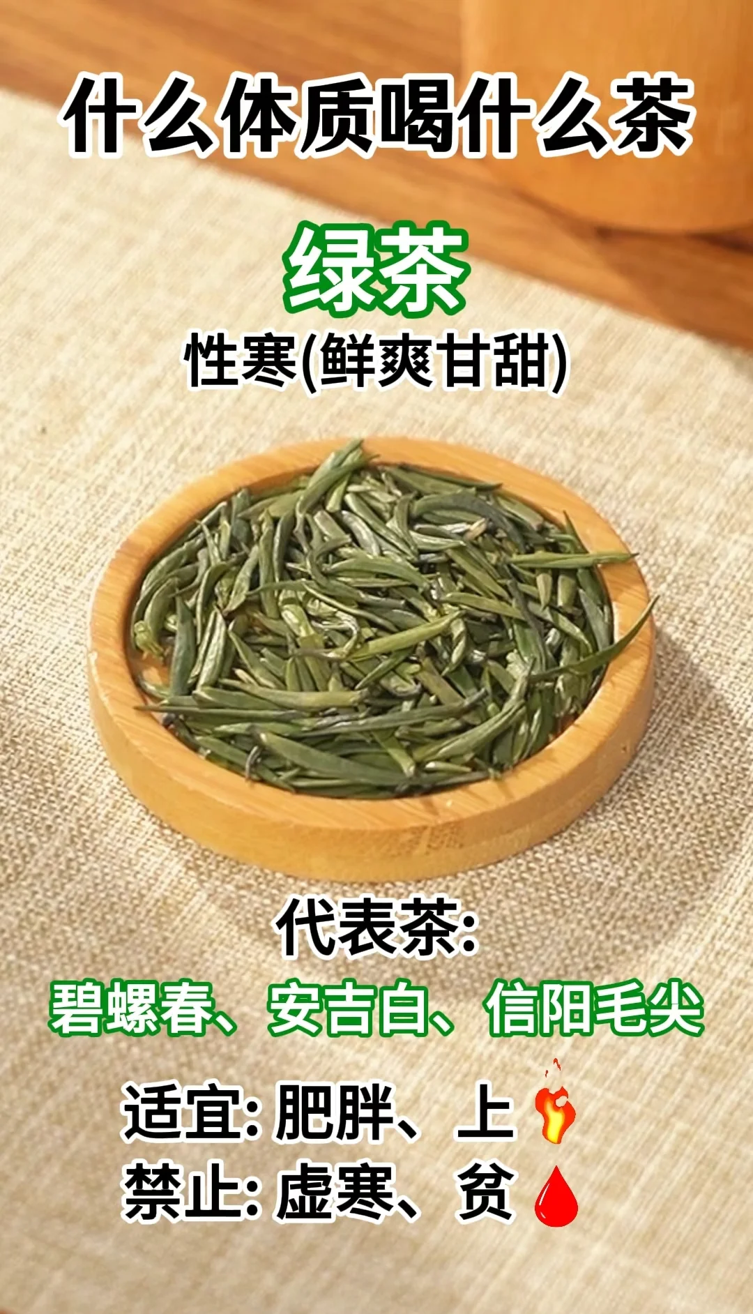 绿茶性凉,适合易上火、熬夜、长期盯屏幕的人。代表茶有龙井、碧螺春、安吉白茶。但胃寒、体虚者要少喝。