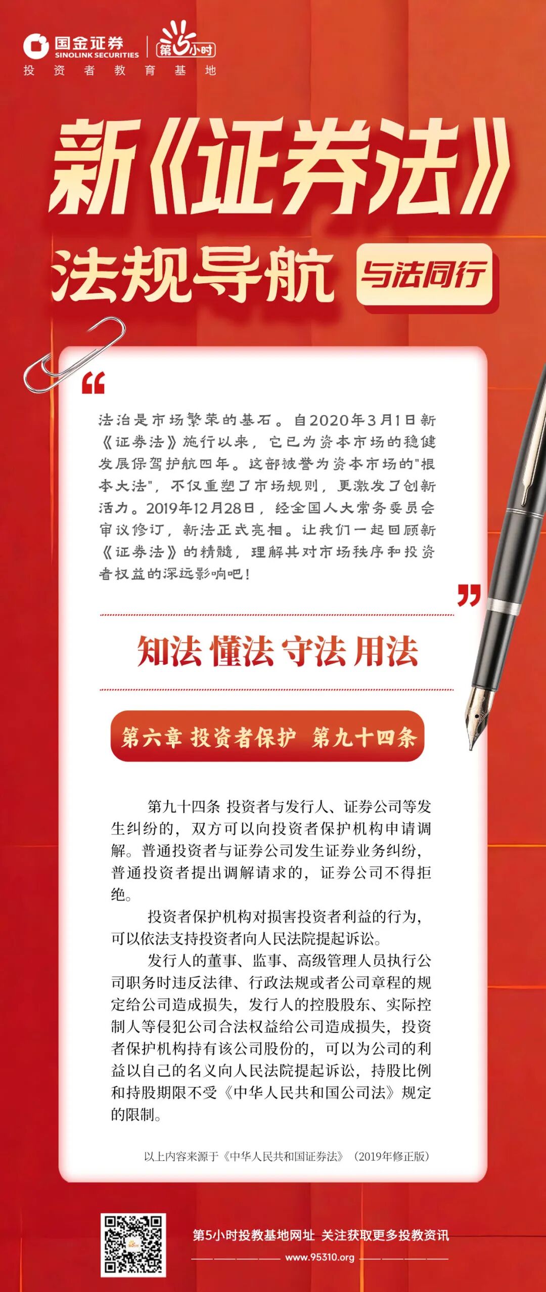 与法同行∣新《证券法》法规导航-第六章投资者保护-第九十四条