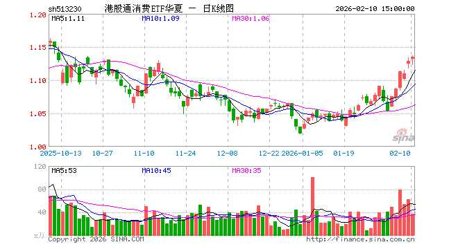 2月10日,港股通消费ETF华夏(513230)涨0.53%,成交额4202.59万元。当日份额减少300.00万份,最新份额为3.46亿份,近20个交易日份额减少1200.00万份。最新资产净值计算值为3.97亿元。