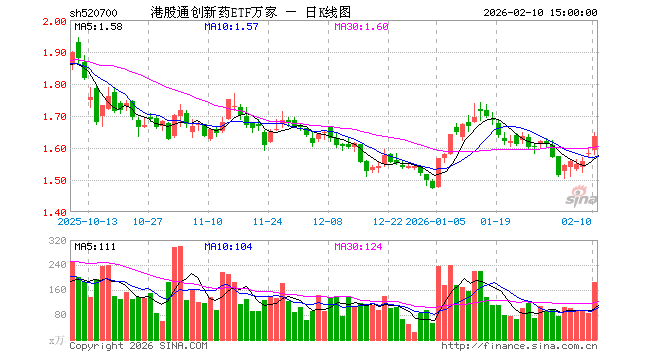2月10日,港股通创新药ETF万家(520700)涨3.22%,成交额3.01亿元。当日份额减少2100.00万份,最新份额为5.51亿份,近20个交易日份额减少3700.00万份。最新资产净值计算值为9.03亿元。