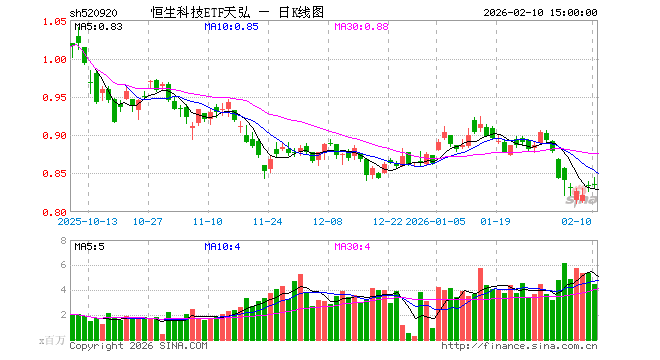 2月10日,恒生科技ETF天弘(520920)涨0.00%,成交额3.75亿元。当日份额增加2.00亿份,最新份额为178.06亿份,近20个交易日份额增加39.97亿份。最新资产净值计算值为147.86亿元。