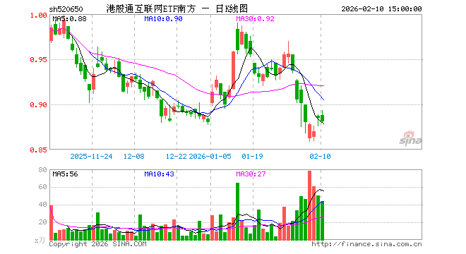 2月10日,港股通互联网ETF南方(520650)跌0.45%,成交额3877.56万元。当日份额增加300.00万份,最新份额为3.57亿份,近20个交易日份额增加4200.00万份。最新资产净值计算值为3.15亿元。