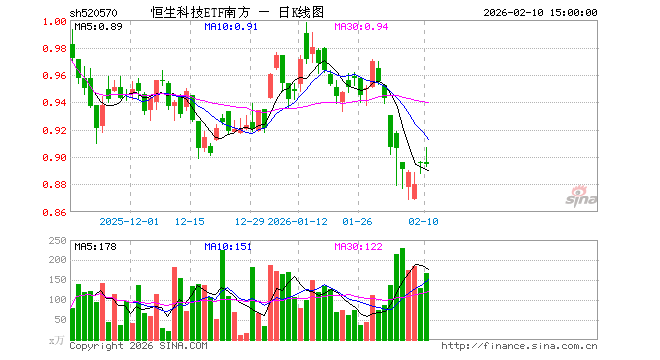 2月10日,恒生科技ETF南方(520570)跌0.11%,成交额1.51亿元。当日份额增加4100.00万份,最新份额为31.19亿份,近20个交易日份额增加4.35亿份。最新资产净值计算值为27.95亿元。