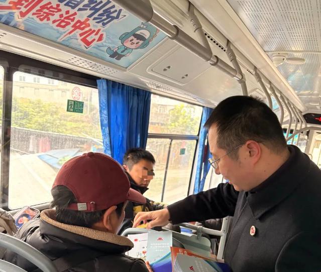 走进两条特色公交线,车厢电子屏正循环播放法治宣传视频。以“有矛盾纠纷到综治中心”为核心,用真实案例+通俗语言,清晰解读“一站式受理、一揽子调处、全链条服务”的解纷模式,职能范围、受理流程、联系渠道一目了然,让“遇事找综治、解纷更省心”的理念潜移默化入人心。乘车途中,政法干警、见义勇为人员、法学会青年志愿者还会带来“面对面”服务,发放法律宣传资料、详解解纷流程、分享正能量事迹、解答法律咨询,精准对接综治中心资源,真正实现“乘车学法、知途找援”,让每一趟出行都有收获。