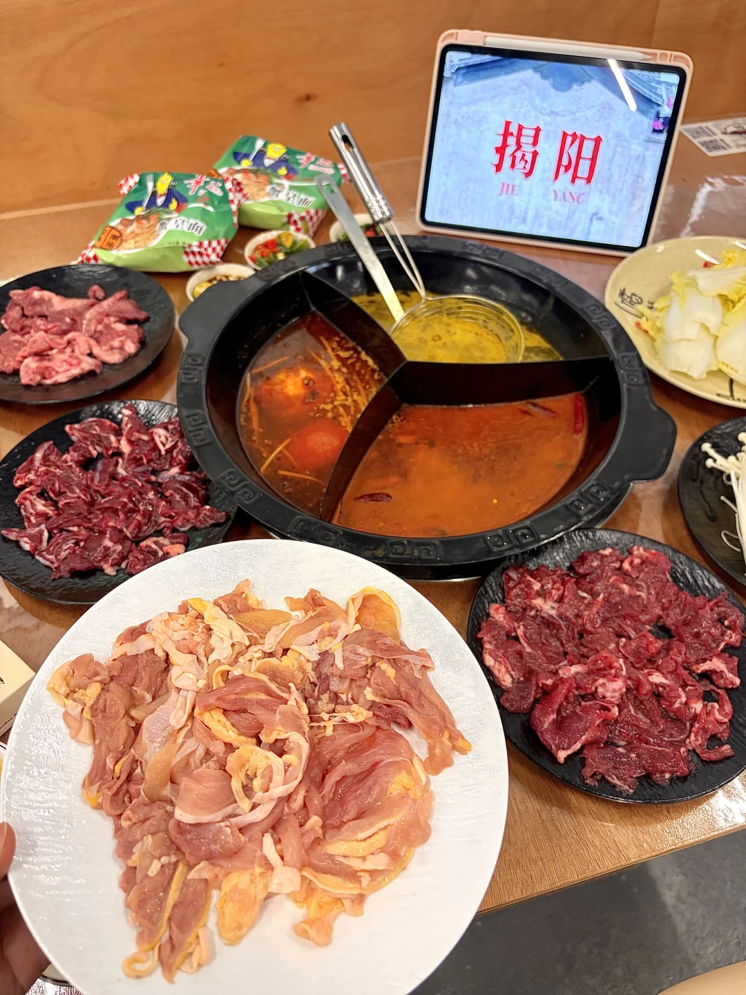 作为一个火锅重度爱好者,这家「之之锅锅」真的太懂年轻人了‼️ ▪️ 牛肉新鲜看得见,现切现涮,口感鲜嫩不柴,每一口都是新鲜的肉香 ▪️ 锅底选择多,三味锅❗️番茄、麻辣都很👍 ▪️ 蘸料区超丰富,自己调的青柠蘸料,清爽解腻,好吃到哭😭 ▪️ 晚上有现场Live表演,唱歌超好听🎵氛围感直接拉满 ▪️ 环境宽敞不拥挤 📷拍照很有质感,随手一拍都是大片 ▪️趣味互动 吃完还能抽个🎁各种可爱的小礼物,仪式感满满