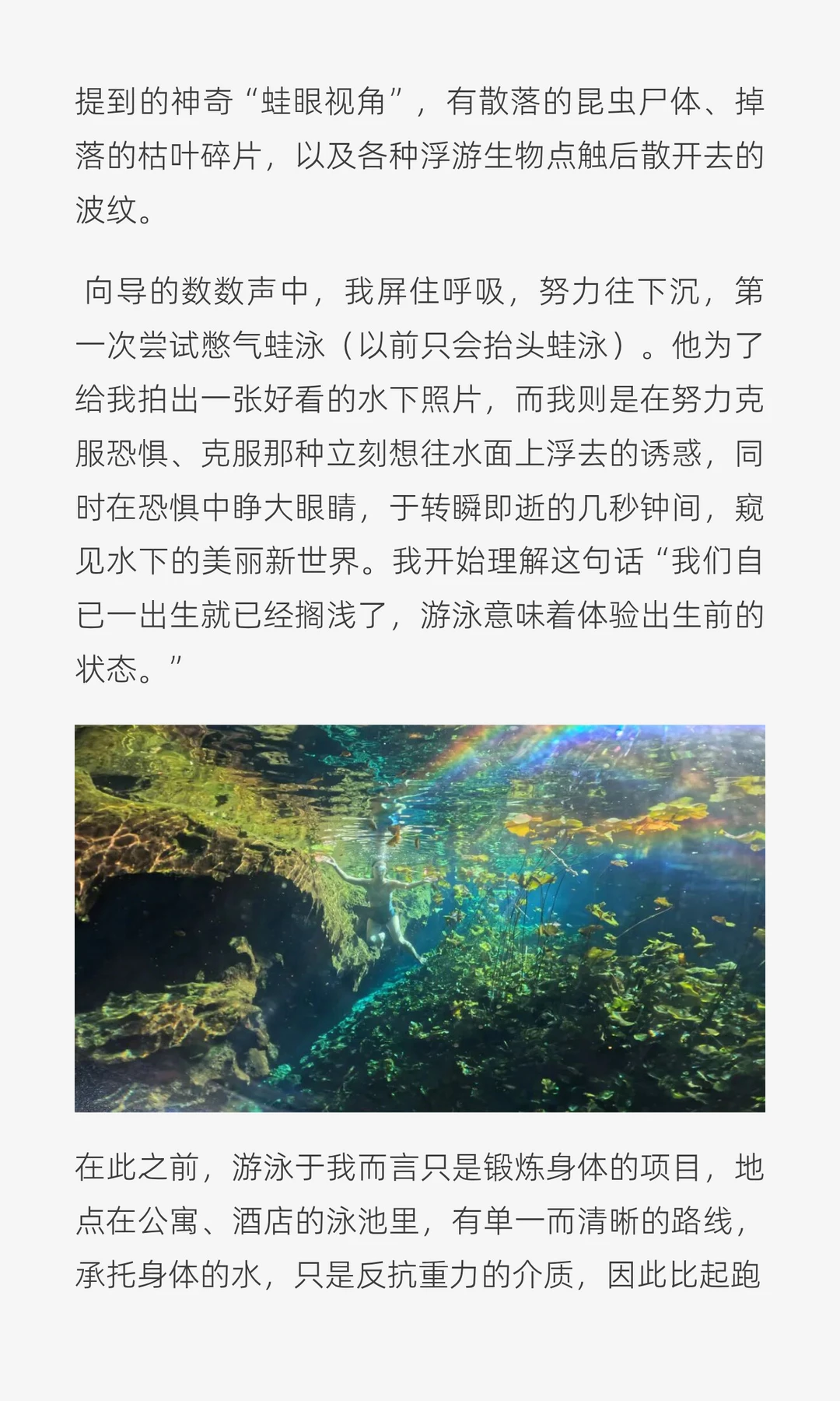 我开始理解这句话“我们自已一出生就已经搁浅了,游泳意味着体验出生前的状态。”