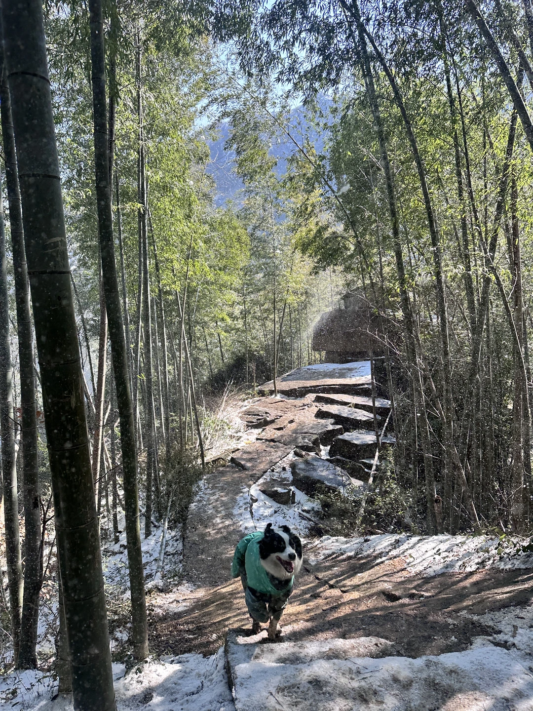 雪后鸬鸟山,带小狗一起踏进了竹海飘雪的仙境❄️ 竹林寂静,雪花缓缓落下,好像时间都停下了~ live图美到窒息!!! 🔖【路线攻略分享】两条上山路线,可以根据自己的情况选择: 1️⃣ 泗溪入口(适合新手/带宠物) 📍 导航“百丈平天堂森林古道-泗溪入口” 🚗 可开车至半山腰停车场,全程以缓坡台阶为主,约2km,慢慢走40分钟左右就能到顶,对狗狗和体力一般的小伙伴非常友好~ 2️⃣ 罗窑坞入口(适合爱徒步的进阶选手) 📍 导航“百丈平天堂森林古道-罗窑坞入口” 🅿️ 停车免费(如果到得晚可以停附近民宿,20元/天) 全程约8km,石阶+木栈道结合,沿途林景很美,登顶大约需要2.5小时,适合想慢慢感受山野的朋友✨ 📌 看雪温馨提示: ❶ 山顶有小卖部,供应烤肠、泡面等简餐,可以轻装上阵,到顶再补给。 ❷ 一定一定要准备好冰爪!路上结冰地方多,普通鞋子很容易打滑。 ❸ 建议穿防水防滑的鞋子,戴手套,保暖同时方便扶握。 ❹ 如果是带狗狗,记得也给它做好保暖,下山后及时擦干脚爪哦~