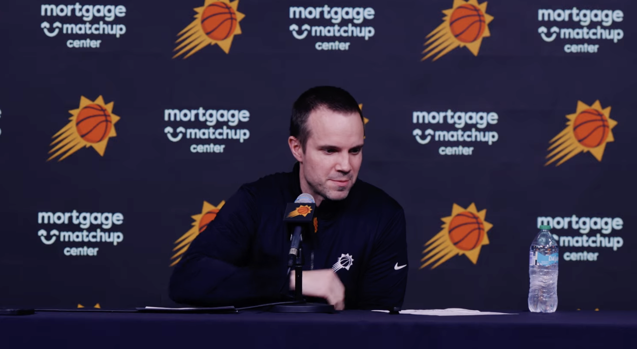 记者:你说过会评估杰伦-格林和德文-布克在明晚背靠背比赛中的上场情况。看到比赛因为哨声被拉得这么长,你会不会觉得如果早点收比赛,就能更轻松地做出让他们明晚出战的决定?