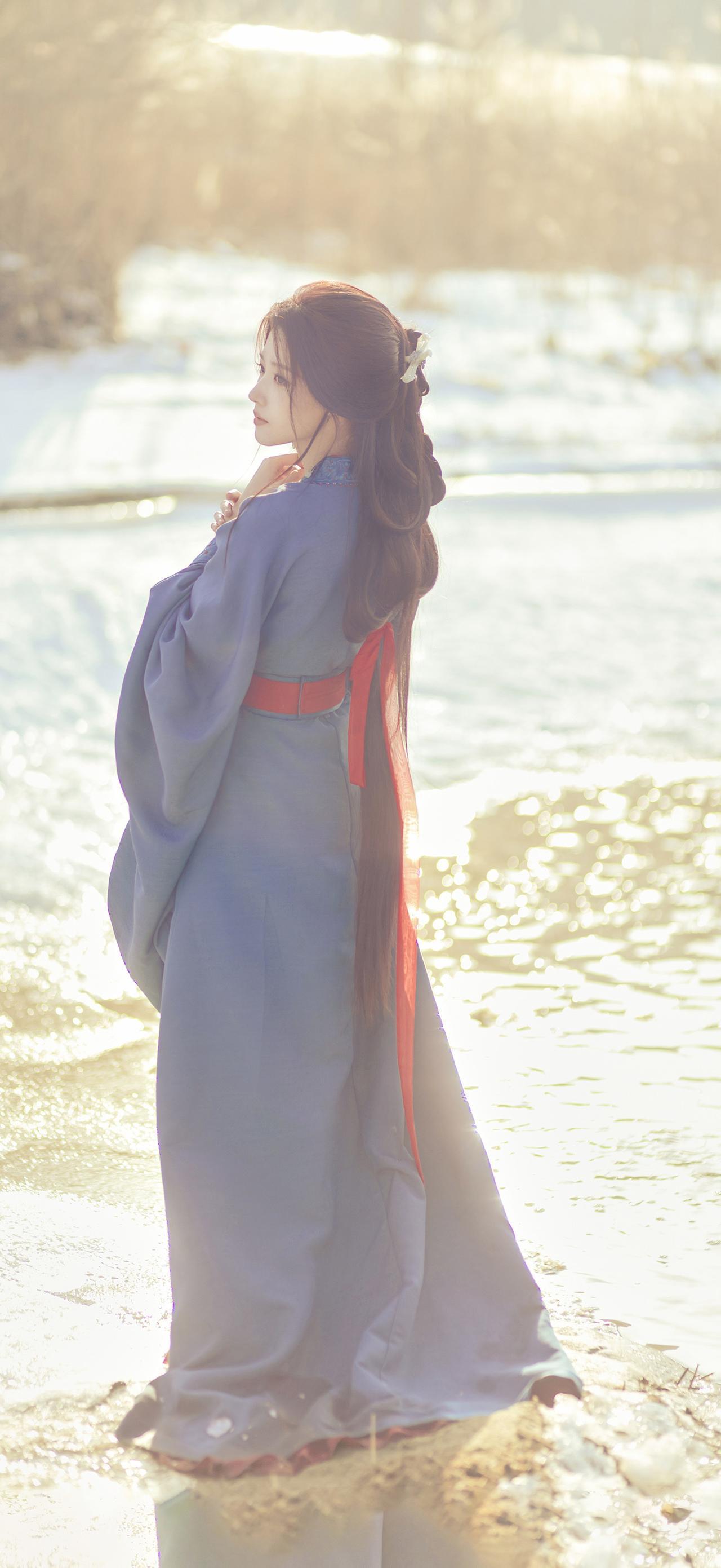 溪流漱玉出空山,纱裙一袭水云间。美图壁纸共享豆包壁纸