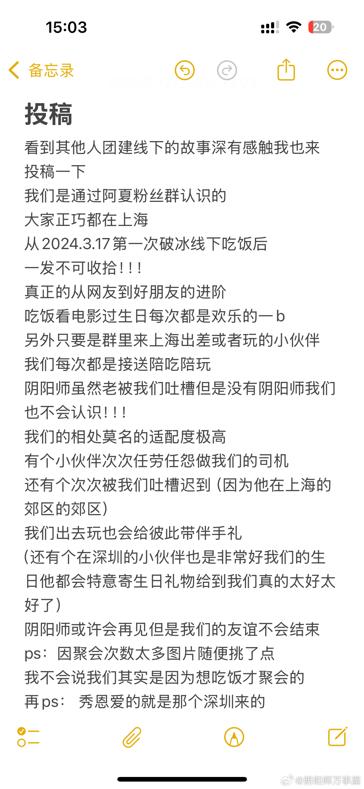“屋屋你好 ,投稿记录一下我们从yys群友到线下见面后成为好朋友的故事,感恩遇见
