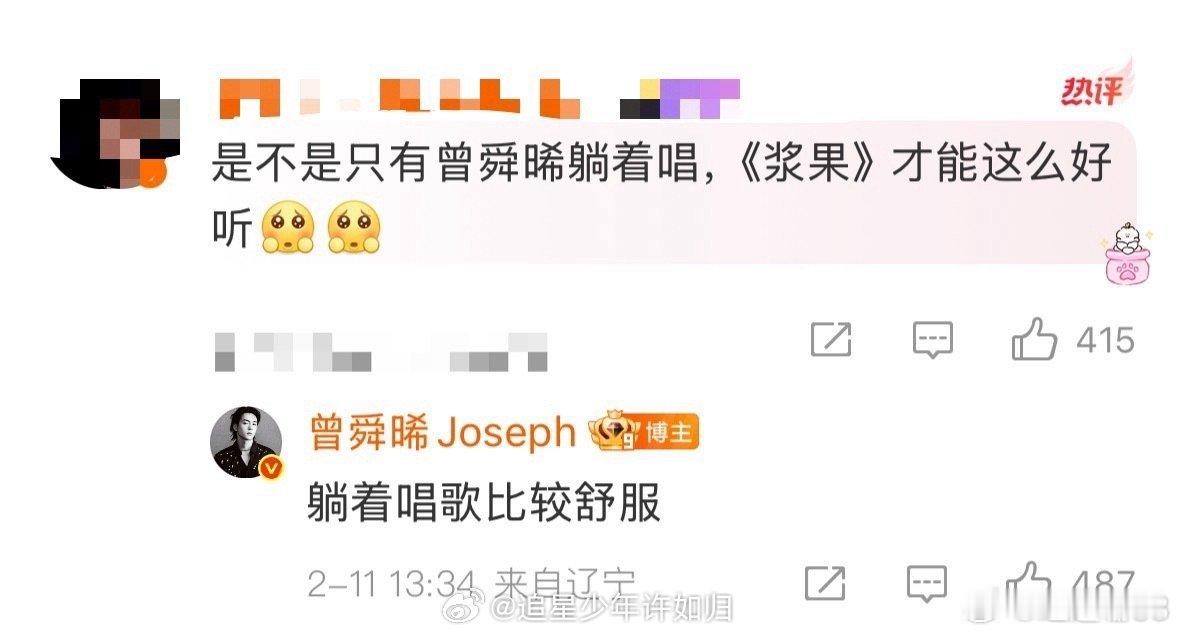 曾舜晞加入群聊 他好像真的把“宠粉”焊进DNA里了。生日记住,好奇的回,梗一出来人已经在接的路上了。不是在表演“我很宠粉”,是本能反应——粉丝问了他就答,粉丝聊他就接,自然得像喝水。