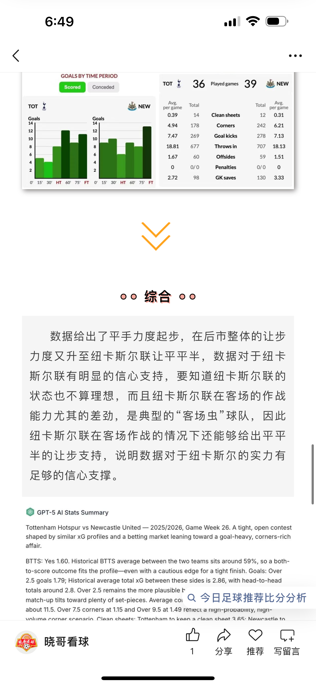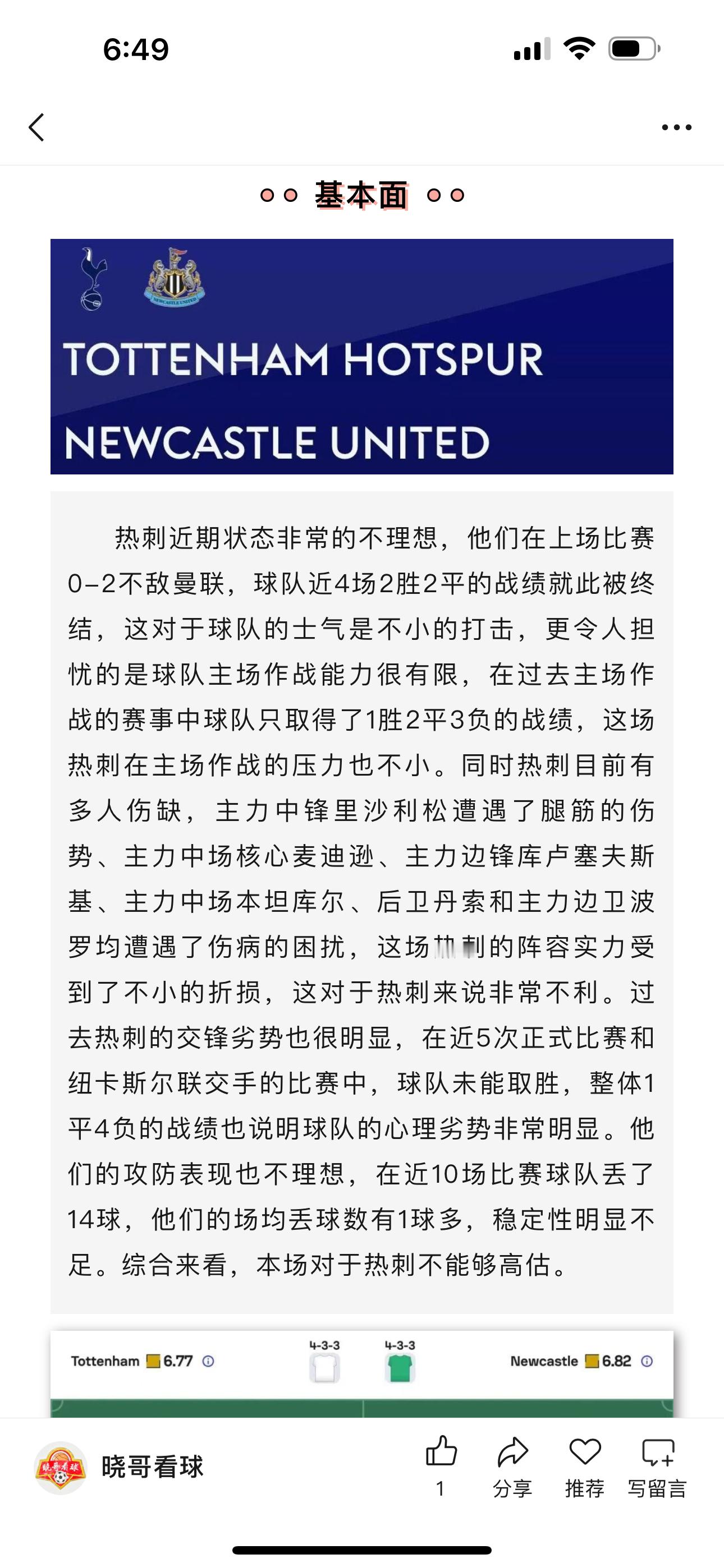 昨日公推英超纽卡斯尔联方向收获好评,这场比赛我在赛前分析就提到了纽卡虽然整体的状态不理想,但是他们的内部结构稳定,加上主帅仍旧具备对于更衣室的掌控权,相对伤病和内部不稳定的热刺来说,这场纽卡斯尔联的好评自然合理,佳夫进球让球队处于不败境地,而拉姆塞的进球锁定了胜局,纽卡士气得到回暖。体育赛事热刺英超纽卡斯尔联