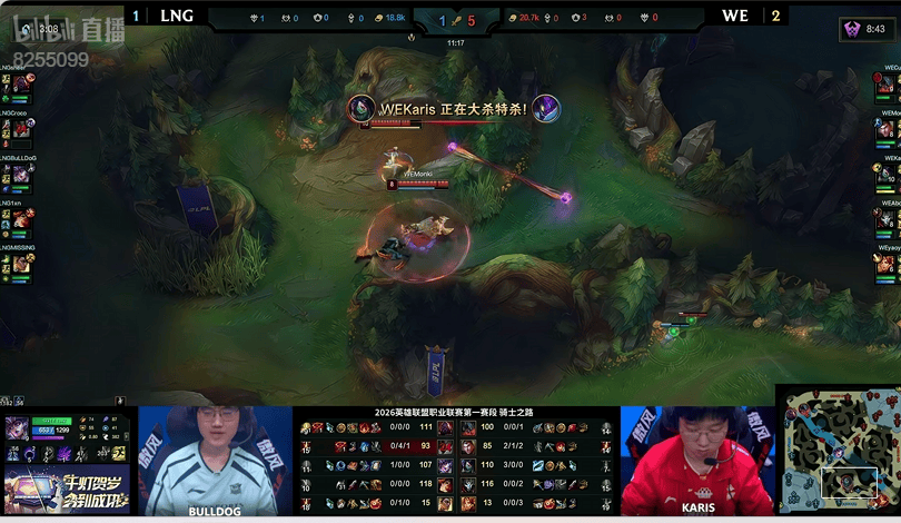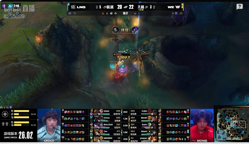 4分钟:WE野辅开局入侵野区直接抓死Croco螳螂