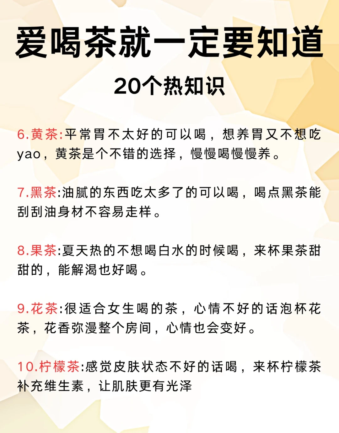 6. 黄茶性质温和,对胃部友好,适合肠胃偏弱的人长期慢饮,温和养护不刺激。