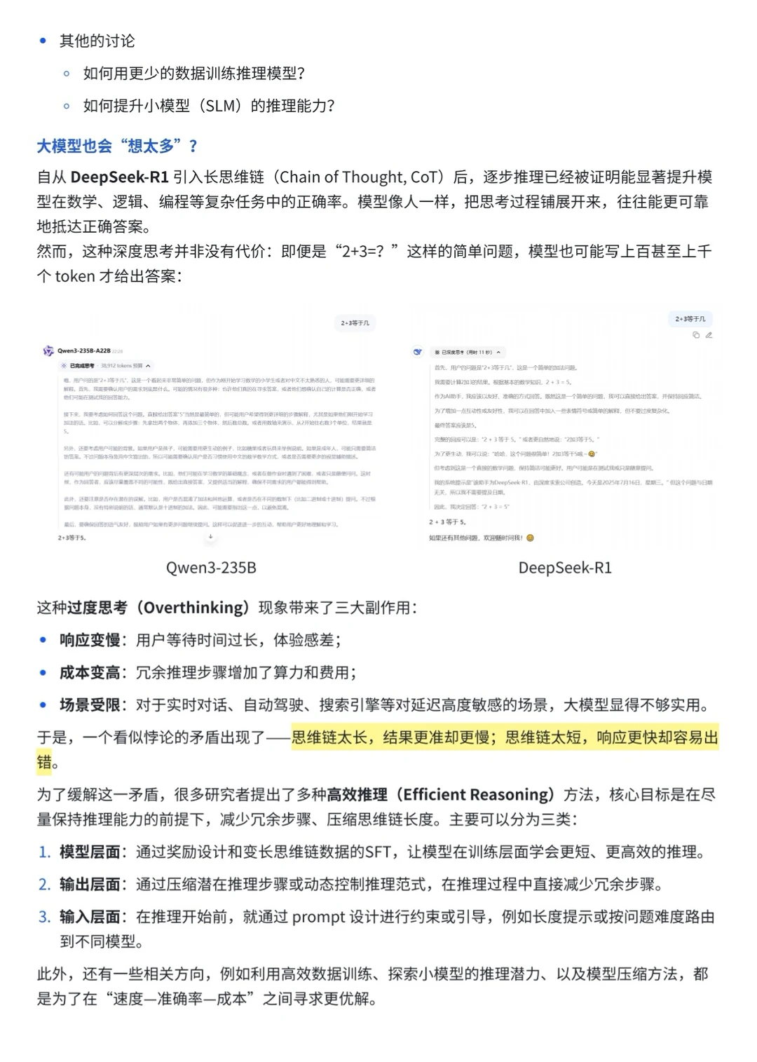 总的来说,它给我们一个清晰的研究地图,可以从哪些角度入手来压缩推理链,从而在医疗诊断、自动驾驶、金融交易等场景里更快、更省、更可靠。