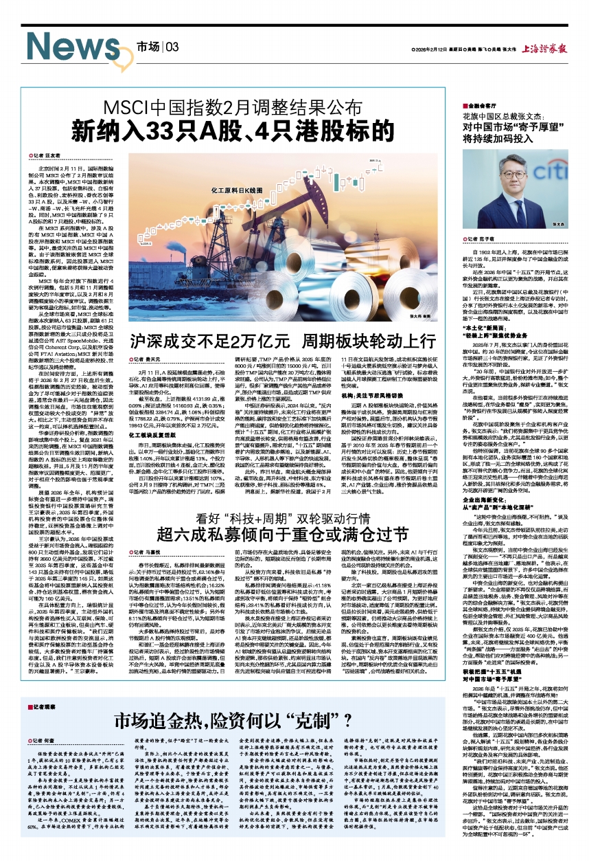 在时间安排方面,上述所有调整将于2026年2月27日收盘后生效。根据指数调整的历史经验,被动型资金为了尽可能减少对于指数的追踪误差,通常会在最后一天尾盘调仓,因此调整生效日尾盘,市场往往能观察到权重变动较大个股成交的“异常”放大。相比之下,主动型资金则并不存在这一约束,可以择机选择配置时点。