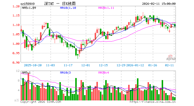 2月11日,TMT50ETF(159909)跌1.00%,成交额130.64万元。当日份额减少500.00万份,最新份额为5.24亿份,近20个交易日份额减少3000.00万份。最新资产净值计算值为5.70亿元。