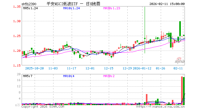2月11日,平安MSCI低波ETF(512390)涨0.24%,成交额2260.21万元。当日份额减少1500.00万份,最新份额为1.39亿份,近20个交易日份额减少3300.00万份。最新资产净值计算值为1.74亿元。
