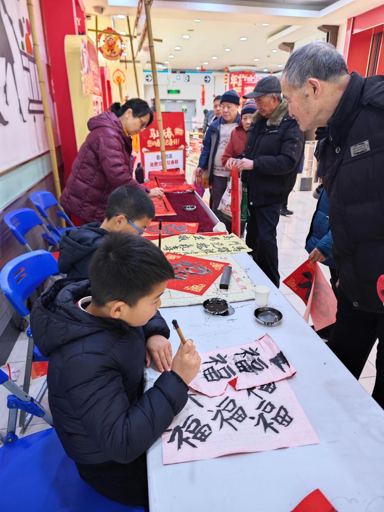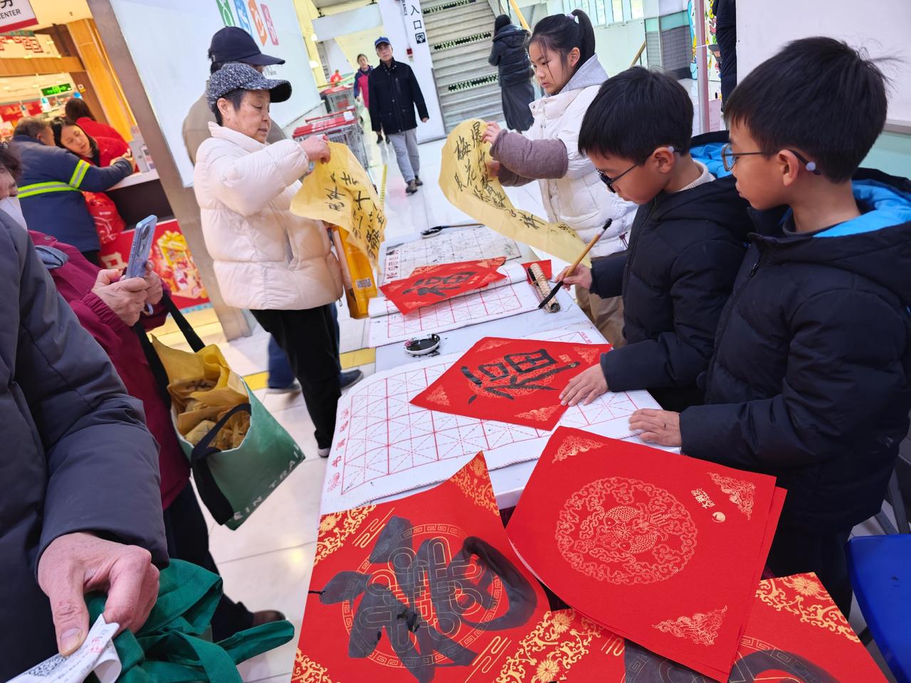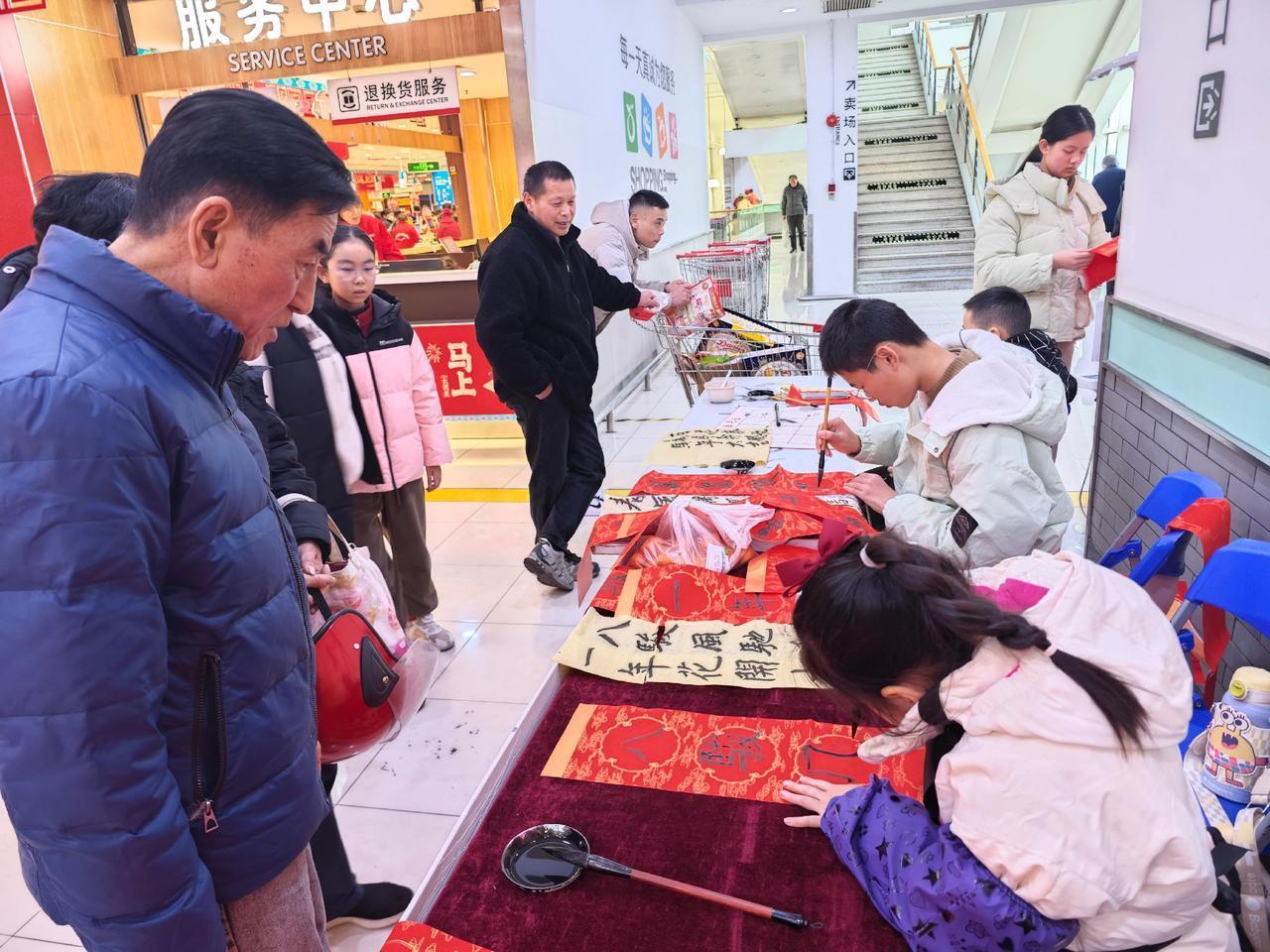 临近2026年春节,传统文化活动越来越多,钟秀文化堂的学生们在大润发写春联送福,