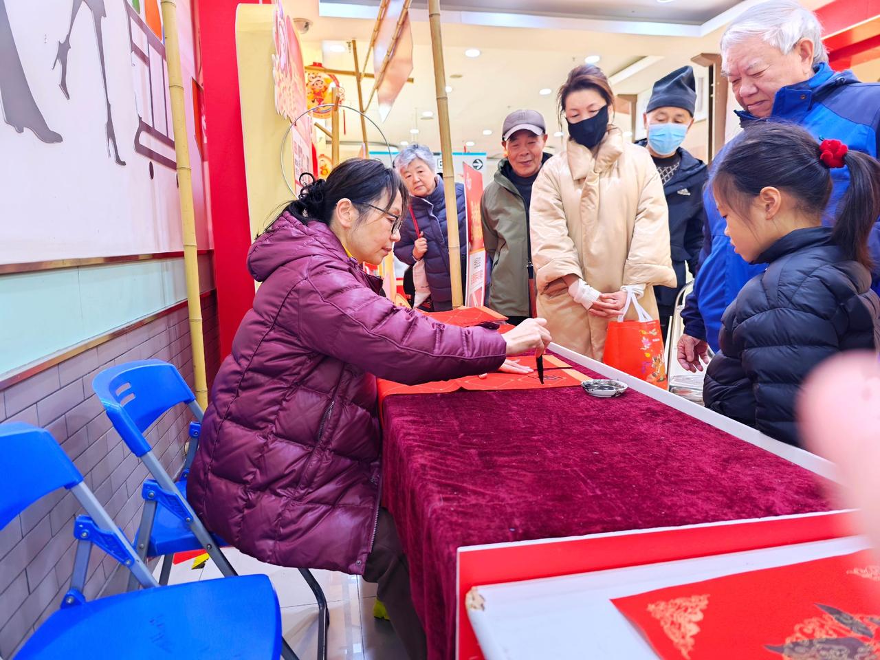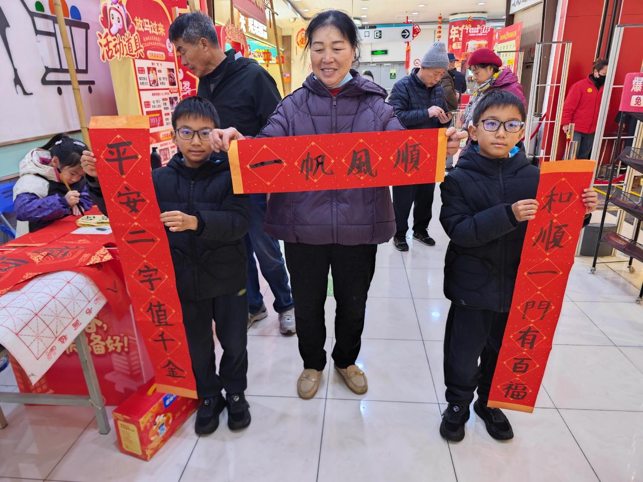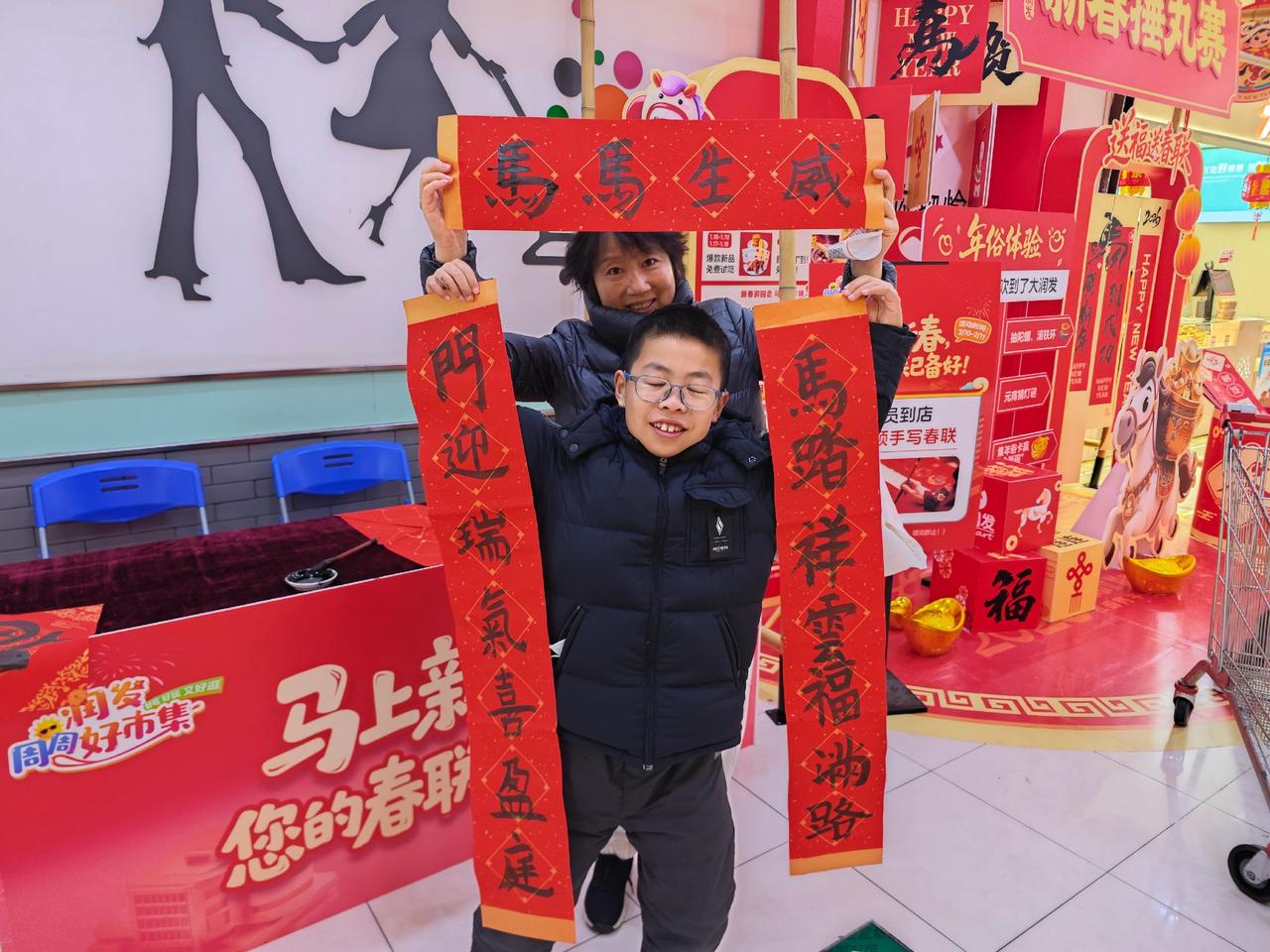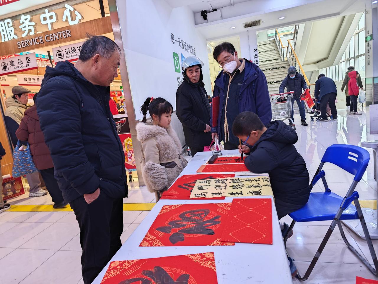 临近2026年春节,传统文化活动越来越多,钟秀文化堂的学生们在大润发写春联送福,
