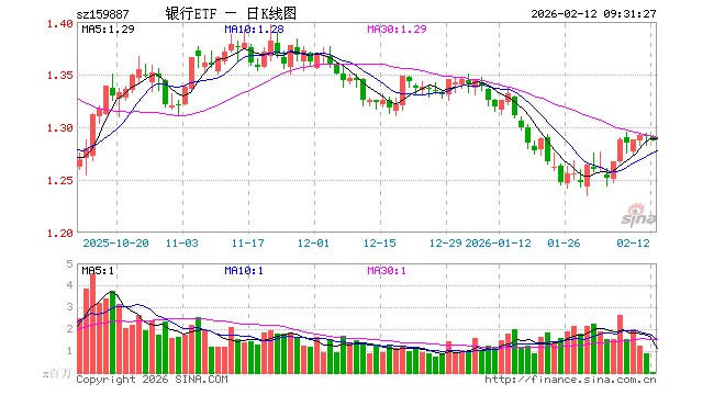 2月12日,银行ETF(159887)开盘跌0.08%,报1.291元。银行ETF(159887)重仓股方面,招商银行开盘涨0.00%,兴业银行涨0.00%,工商银行涨0.00%,农业银行涨0.00%,交通银行涨0.00%,浦发银行涨0.00%,江苏银行涨0.00%,平安银行涨0.00%,上海银行涨0.00%,民生银行涨0.00%。