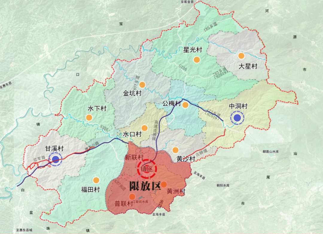 (一)平山街道区域:东至环城北路、县林业局办公楼、粤惠和谐小区;南至环城南路、寨场山;西至西枝江、河北二路、青龙大道、新平大道至环城南路交汇处;北至环城北路、三联大桥。