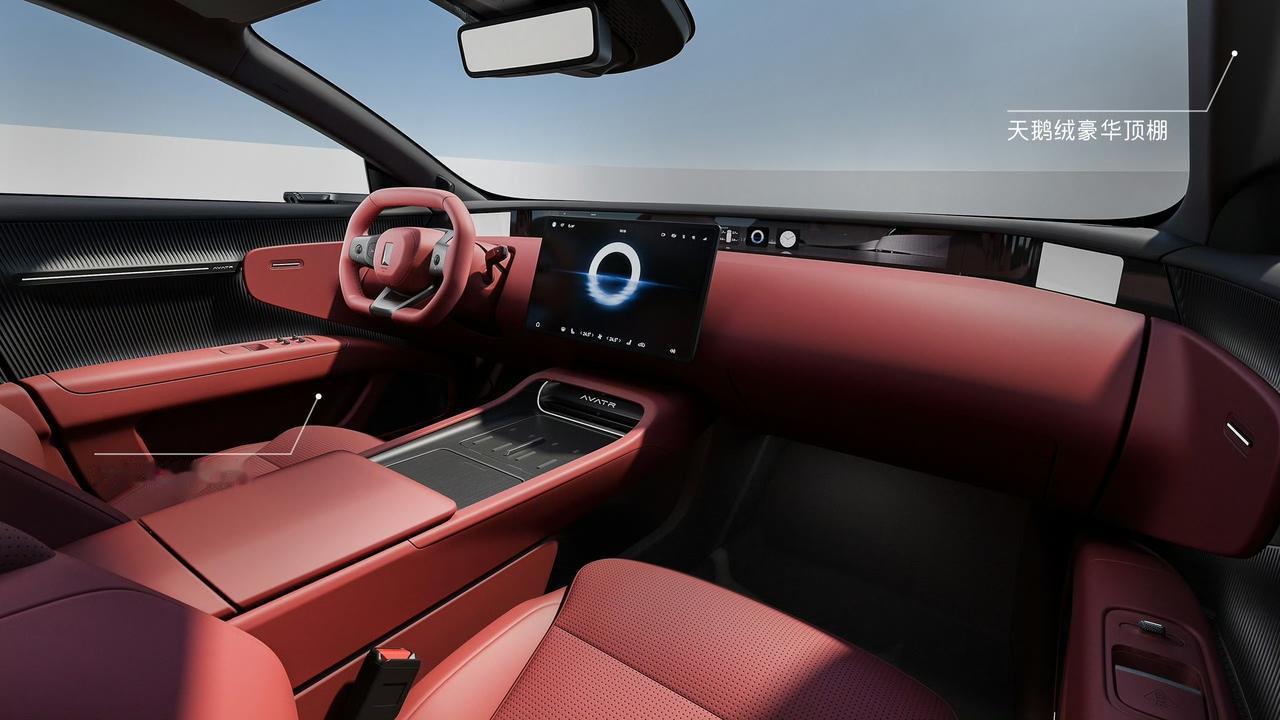 新款阿维塔12内饰官图  天鹅绒车顶+零重力座椅 方向盘加了语音唤醒和Bo