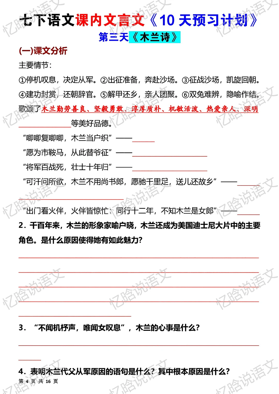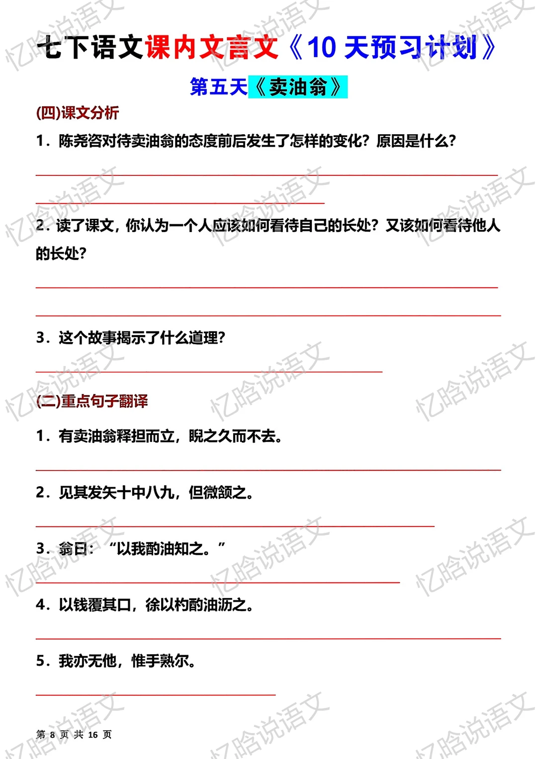 忆晗说语文 初中语文 语文 文言文 寒假 预习 七年级语文 语文笔记 背诵 七年级下册
