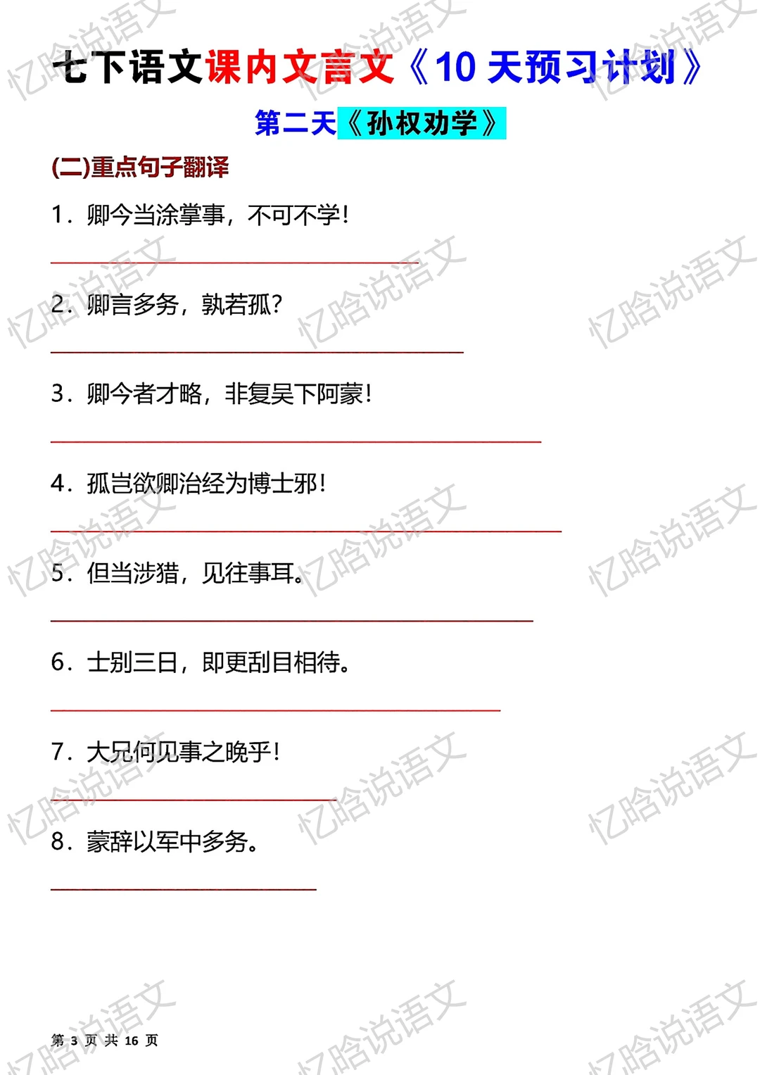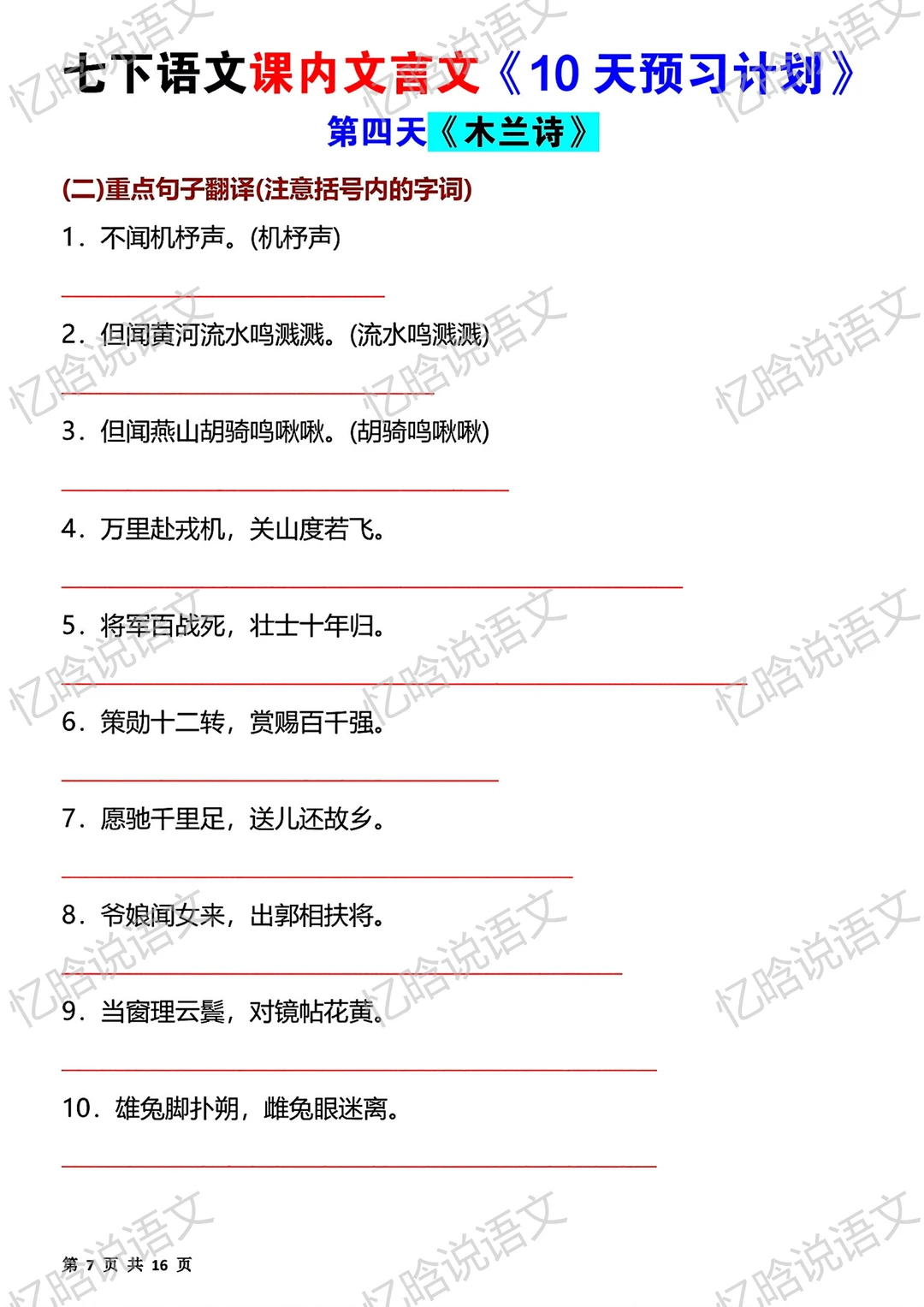 寒假预习|七下课内文言文10天预习计划
