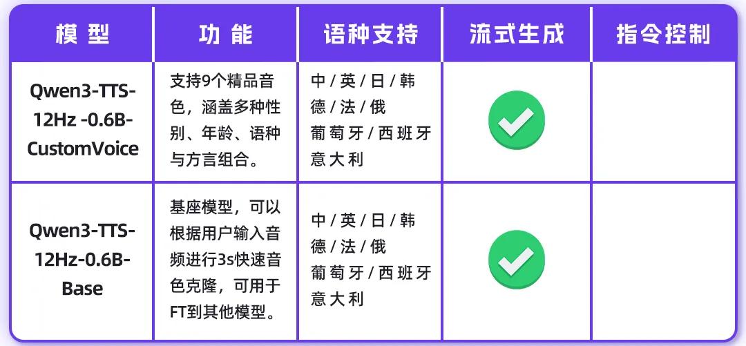 Qwen3-TTS 全系列模型正式开源 Qwen 发布 Qwen3-TTS 语音生成模型,支持音色克隆、音色创造、自然语言控制与低延迟流式合成。基于多码本 Tokenizer 与 Dual-Track 架构,首包音频可在单字符后输出,最低延迟 97ms。 模型提供 1.7B 与 0.6B 两种规模,覆盖中英日等 10 种语言,现已在 GitHub、Hugging Face、ModelScope 开源。 重要亮点 1.功能全面:支持音色克隆、创造、超高质量拟人化语音生成以及基于自然语言描述的语音控制。 2.性能卓越:在音色克隆、创造、控制等方面均达到 SOTA 性能。 3.支持多种语言:覆盖 10 种主流语言及多种方言音色。 4.开源免费:已在 Github 上开源,并提供 API 接口。