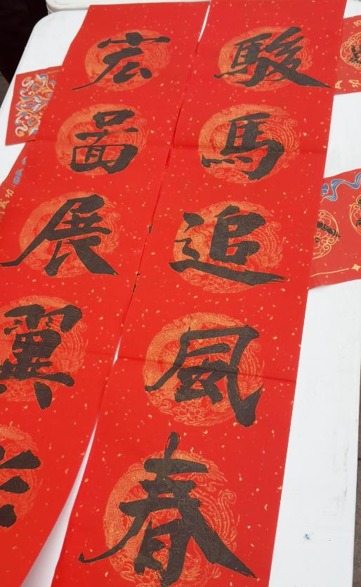“骏马追风春色里宏图展翼彩云间”一副副结合马年吉兆、寓意平安与春节特色的春联跃然纸上,大红的福字更是写满了吉祥与期许。不少旅客驻足围观、有序领取,脸上洋溢着喜悦笑容。