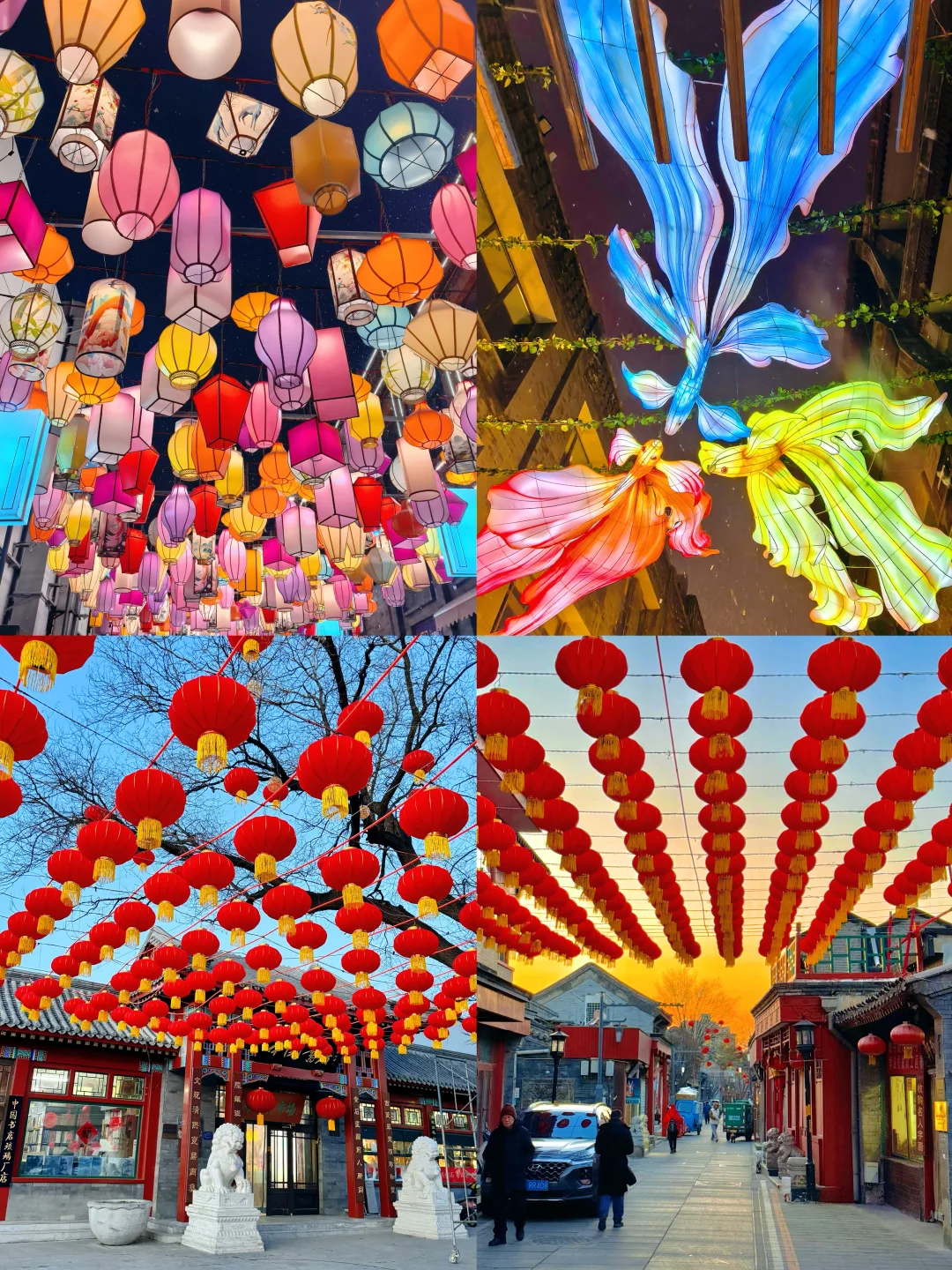 🌟今年的前门,有很多地方挂了花灯。琉璃厂文化街东街满树花灯,西街有万马奔腾花灯,晚上花灯会亮起来,一路上各种店很多也可以逛吃买。最近还有各种免费的活动。这附近有两大庙会,厂甸庙会和前门庙会,过年的时候非常热闹。