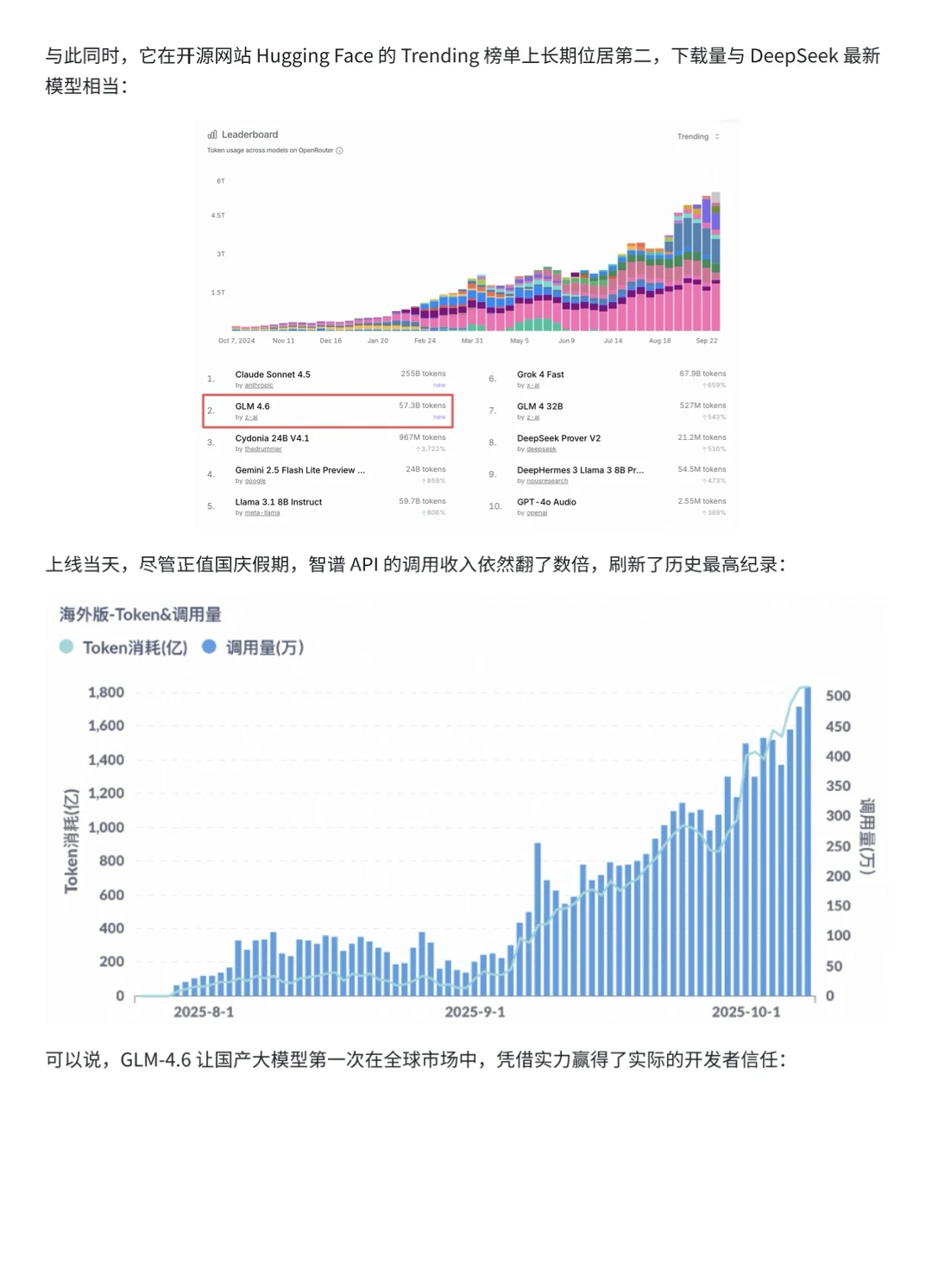 节前发布的 GLM-4.6,被誉为“对齐 Claude Sonnet 4 的国产代码大模型”,不仅在 Hugging Face 登顶热榜、开发者圈爆火,甚至在 OpenRouter 上的调用收入超过 Qwen、Kimi、DeepSeek 总和,真正做到了让世界看见中国智造在代码能力上的硬实力。