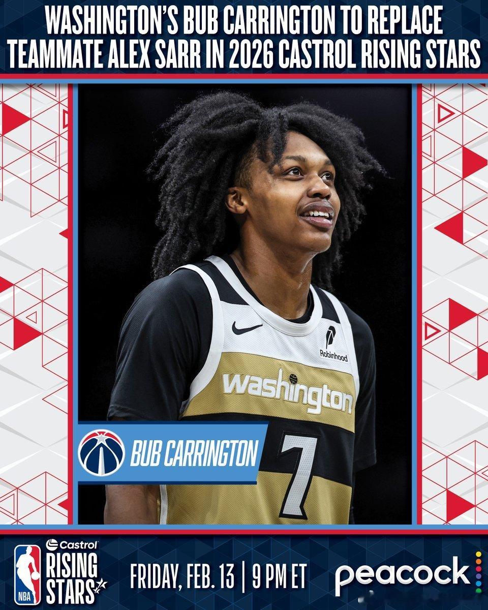 新秀挑战赛递补名单:贝利顶替弗拉格,卡灵顿顶替萨尔。2026nba全明星