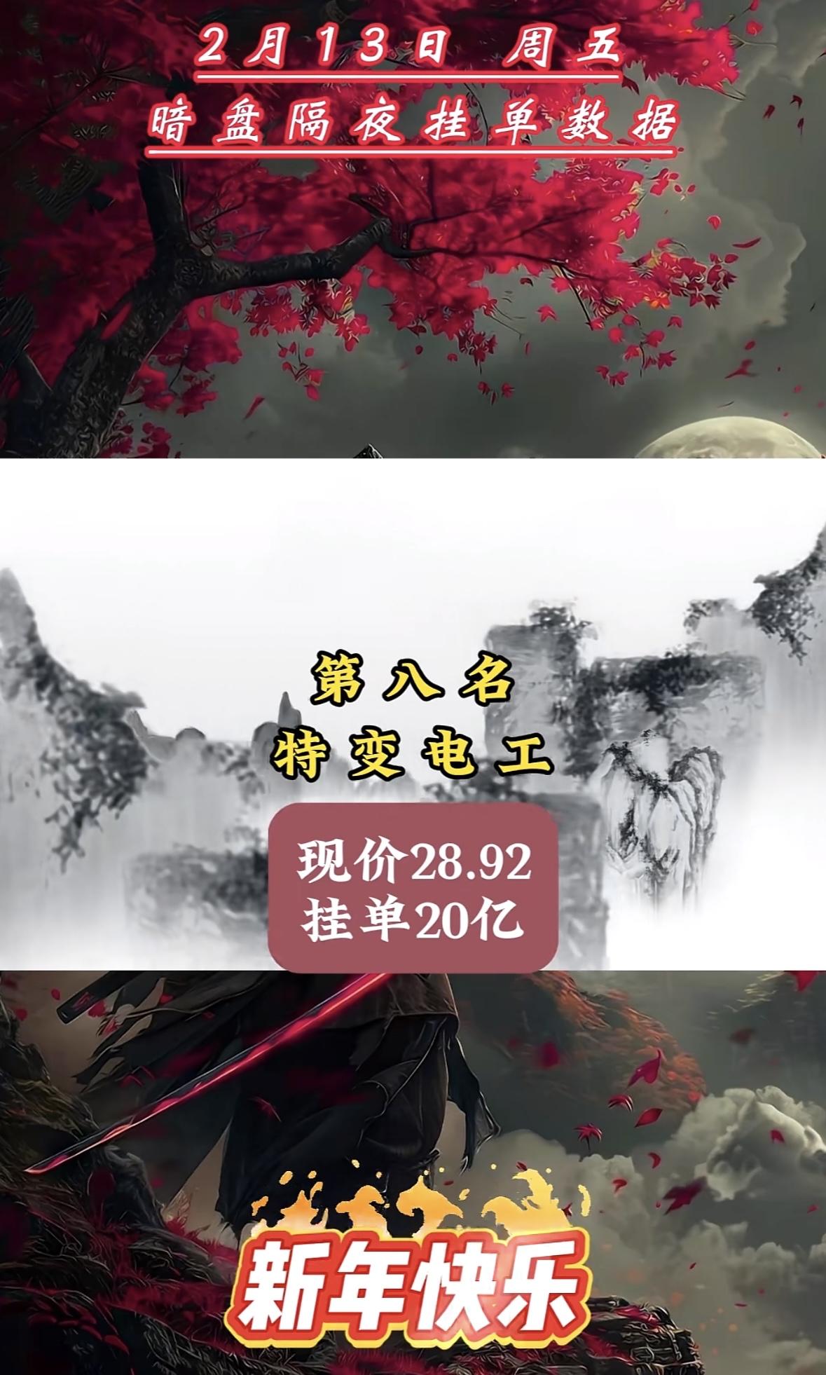 2月13日暗盘隔夜挂单特变电工挂单数据,新年快乐! 利欧股份暗盘挂单强势领跑,
