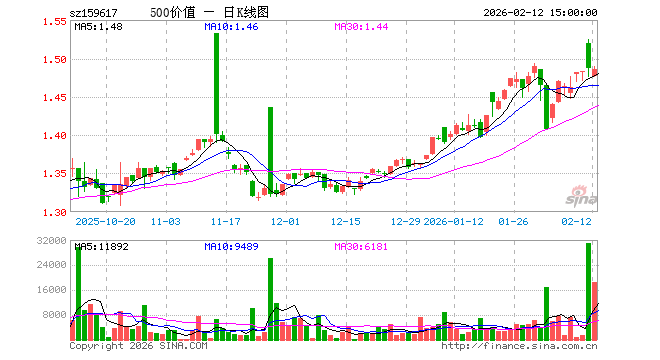 2月12日,中证500价值ETF华夏(159617)跌0.07%,成交额276.40万元。当日份额减少100.00万份,最新份额为2941.84万份,近20个交易日份额增加200.00万份。最新资产净值计算值为4380.40万元。